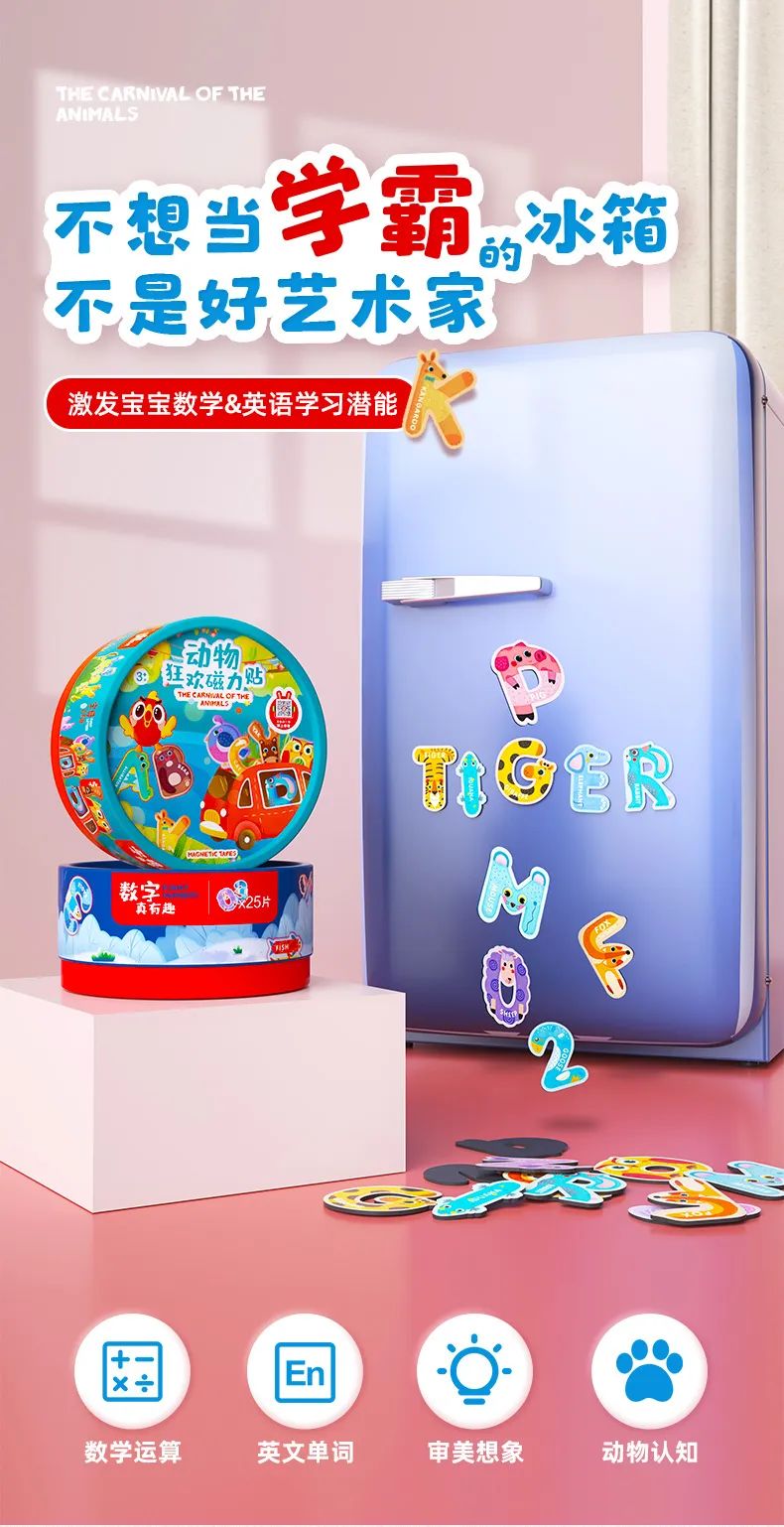 GWIZ动物字母数字磁力冰箱贴,激发孩子学习英语和数学的潜力