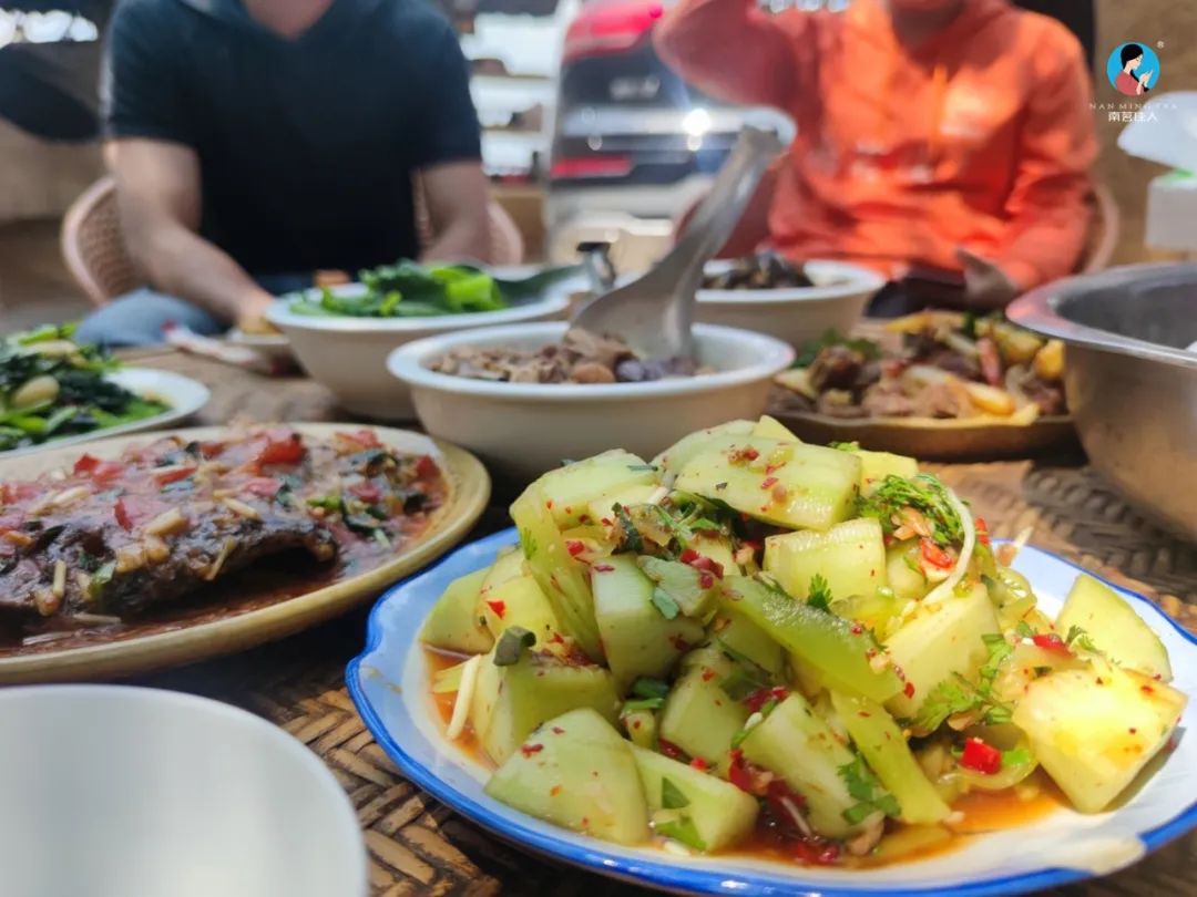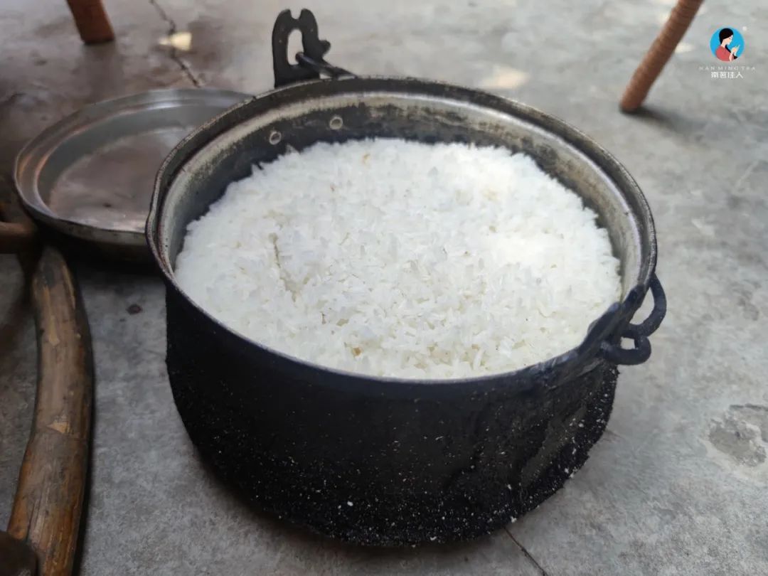 离开古茶园,来到景迈山芒景上寨,已经是中午12点左右,便在茶农朋友家的小院中吃午饭,茶农朋友提出黑漆漆的铜锅,里面盛着白花花的香甜米饭,感叹当代电器虽然方便,但这样质朴的传统已经不多见了。