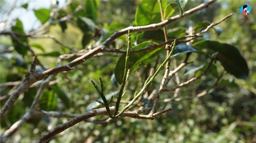 来到古茶园,我们首先查看了古茶树的发芽情况,可以看到树龄较大、树围较粗的古茶树并没有发芽迹象,再看树龄、树围较小的部分古茶树则已经长出一芽一叶(较嫩、未展);