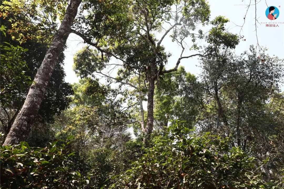 茶农朋友家的古茶园,在明媚阳光下,被苍天森木环绕,身处茶园清爽阴凉。