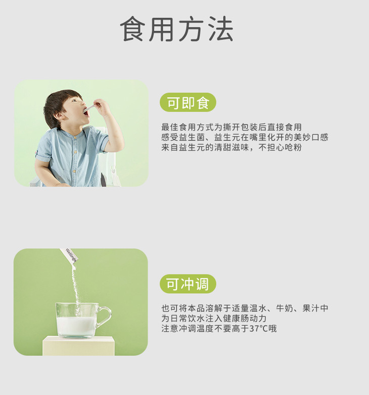 Wellingo益生菌食用方便,味道好,宝贝接受度高,随时随地守护宝贝肠道健康,呵护宝贝健康成长。