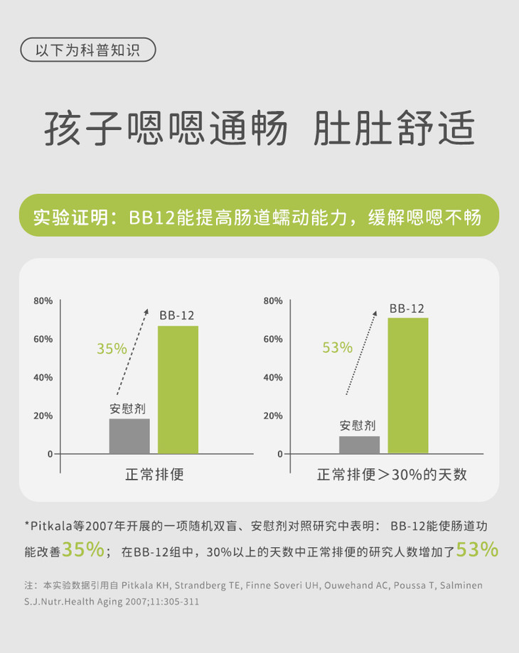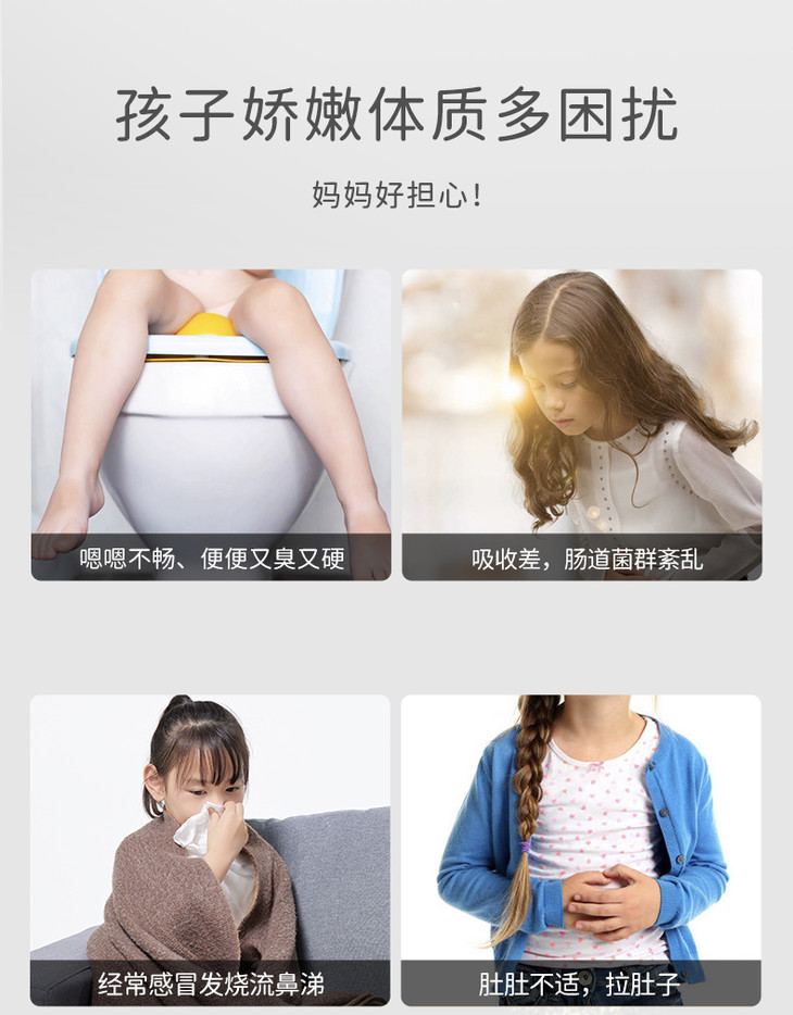 益生菌帮助增强肠道蠕动能力,宝贝肚肚更舒服,便便更顺畅,自然身体素质更好。同时,有效降低湿疹、感冒发生率。