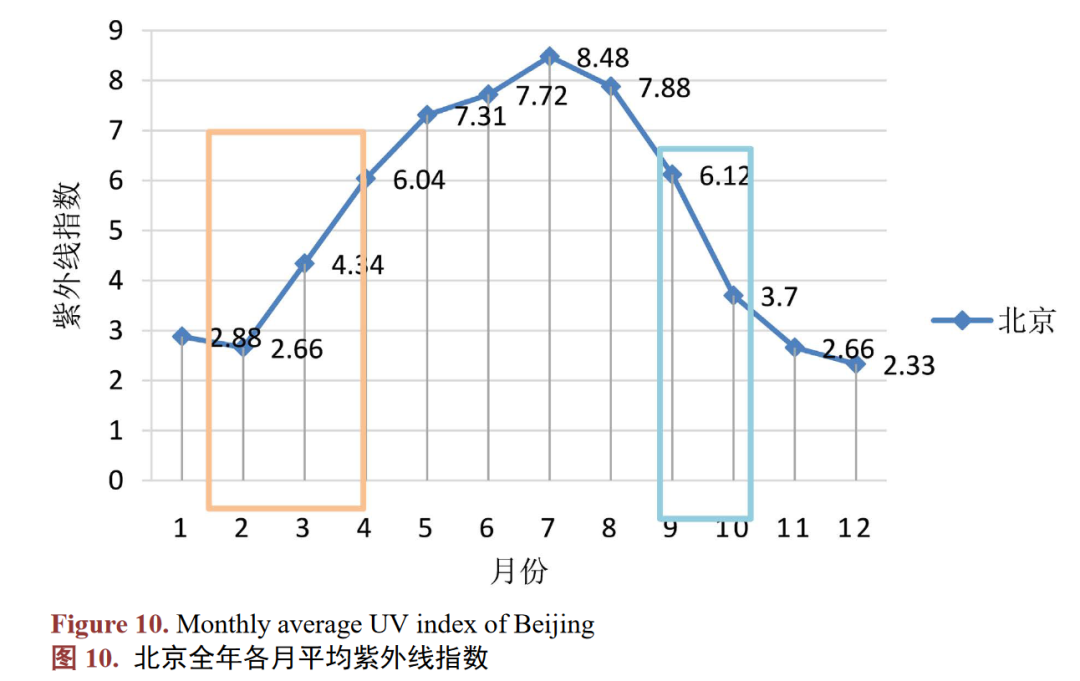 再往北就没有数据了,但这已经能说明问题了——不是防微杜渐,不是谨小慎微,哪怕在北京的1月份和2月份,紫外线的风险也确实存在,只不过不是每一天都有罢了,三天里有一天。