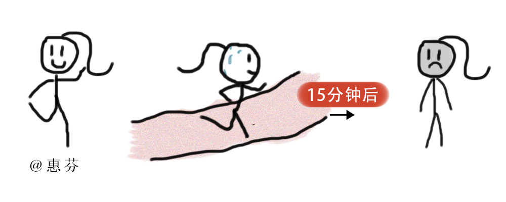 惠芬不涂防晒,早上出去跑步,15分钟之后有点晒黑了。