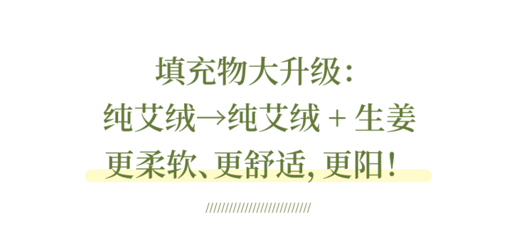 ✅填充物升级为纯艾绒+生姜,更暖、更阳