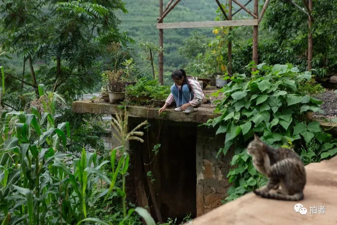 ▲贵州六盘水“摇滚学校”海嘎小学学生龙娇,正在摆弄家里的草莓苗。新京报记者 陈婉婷 摄