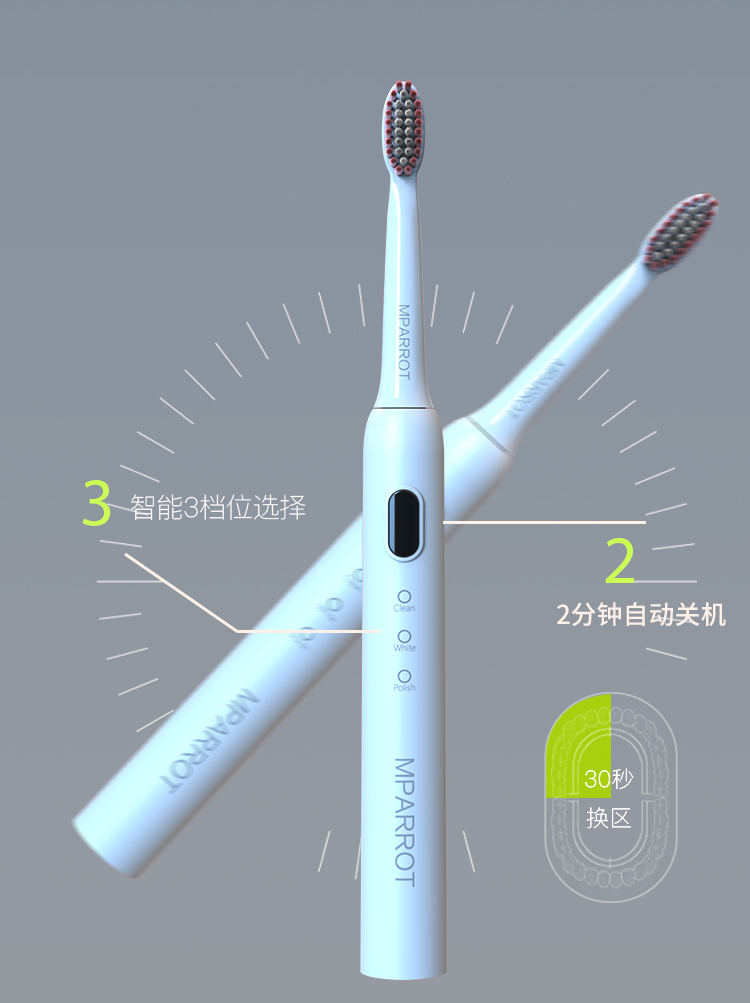 如果你是第一次用电动牙刷,建议从低速档慢慢用起,等到牙齿适应后再调档也不迟~