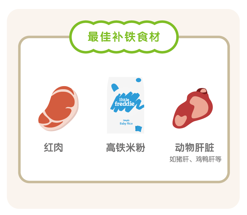 可以从高铁米粉、红肉、动物肝脏开始尝试。不过动物肝脏维生素A含量高,频繁食用可能导致 VA 摄取过多,一周吃1-2次就可以了。