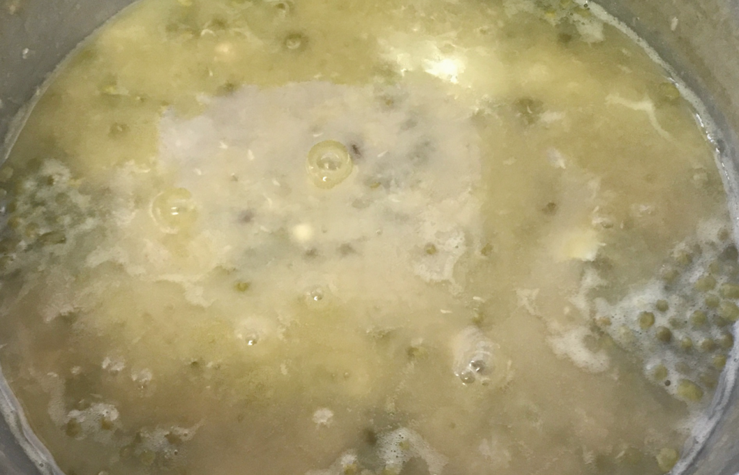 绿豆120g,薏仁60g,百合40g,黄冰糖2~3小块,清水1500ml;