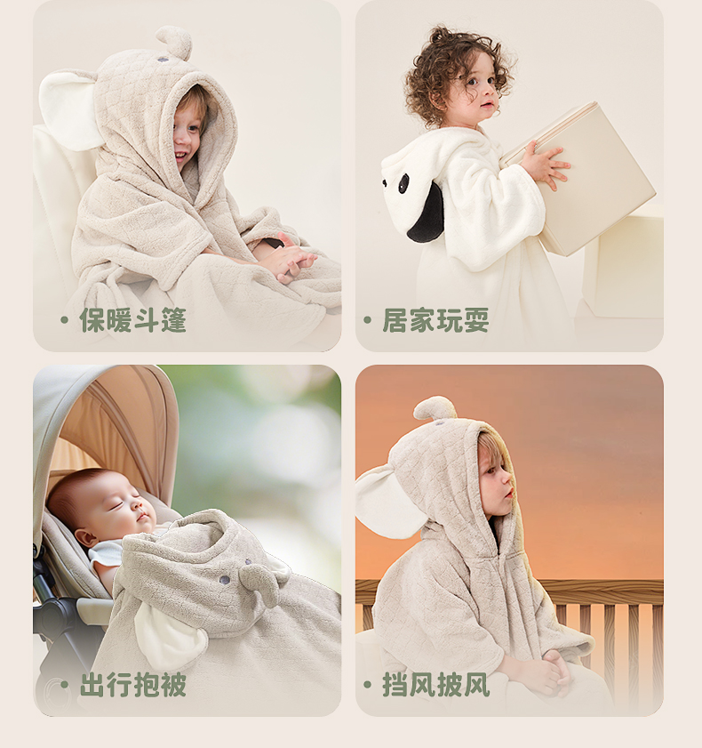 超大尺寸:无论是小宝贝还是大儿童,都能被满满当当的温暖紧紧包围,从头到脚呵护周全。连帽设计,专门呵护湿发,确保头部温暖,杜绝干发着凉。