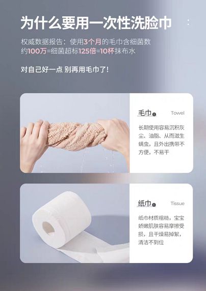 早已用上了一次性洗脸巾