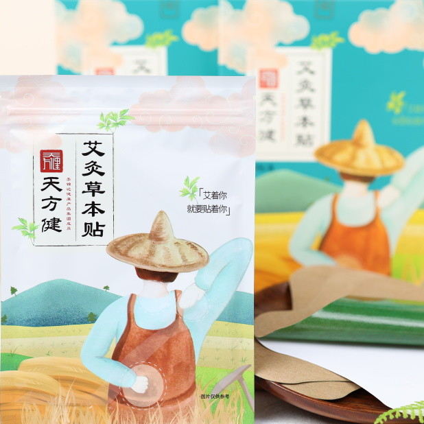 「艾灸草本贴」是将艾叶油、薄荷油、桉叶油、桂花油、肉桂油等为原料熬制成膏体制成贴剂,方便使用,超薄一片,易撕易贴。