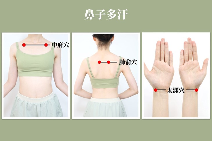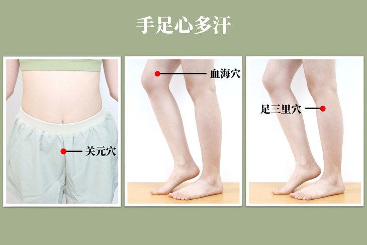 如果发现有以上出汗异常的情况,可以通过多揉搓、点按、刺激对应的穴位组合来进行调理。有条件可以到正规的中医院进行艾灸、针灸。