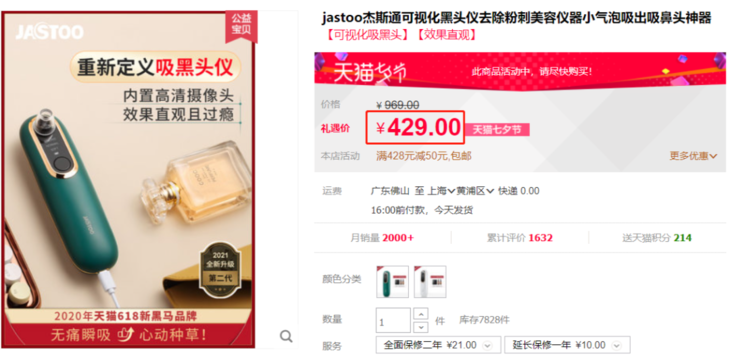 不用担心,这款Jastoo可视化吸黑头仪有3个吸头、3个档位,就是考虑到每个人的皮肤承受能力不同而设置的~不管你是“婴儿肌”的妹子,还是“墙皮纸”的汉子,它都能将你皮肤深层的污垢“连根吸起”!Jastoo黑头仪更厉害的地方在于:它是可视化的!只要连上app,在300万高清摄像头下,黑头在哪里、有多深多大都一目了然。连女明星也沉迷其中不能自拔,爱它爱到带上节目推荐!质量方面也不用担心,Jastoo可视化吸黑头仪通过了专业机构质检:而且还有厂家1年质保!!!( 非人为导致的质量问题,一年内有质量问题主机免费换新机)帮大家查了一下,这个黑头仪在某宝日常价是429元。但是今天我们帮大家争取到了一个非常优惠的价格:199元。并且前200名下单用户,我们将赠送价值69元的黑头导出精华和毛孔收缩精华各一瓶。(悄摸摸说一句,如果用黑头仪,收缩和导出精华必然需要的,早下单早拿赠品啊)