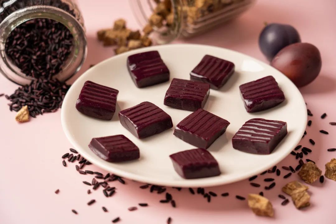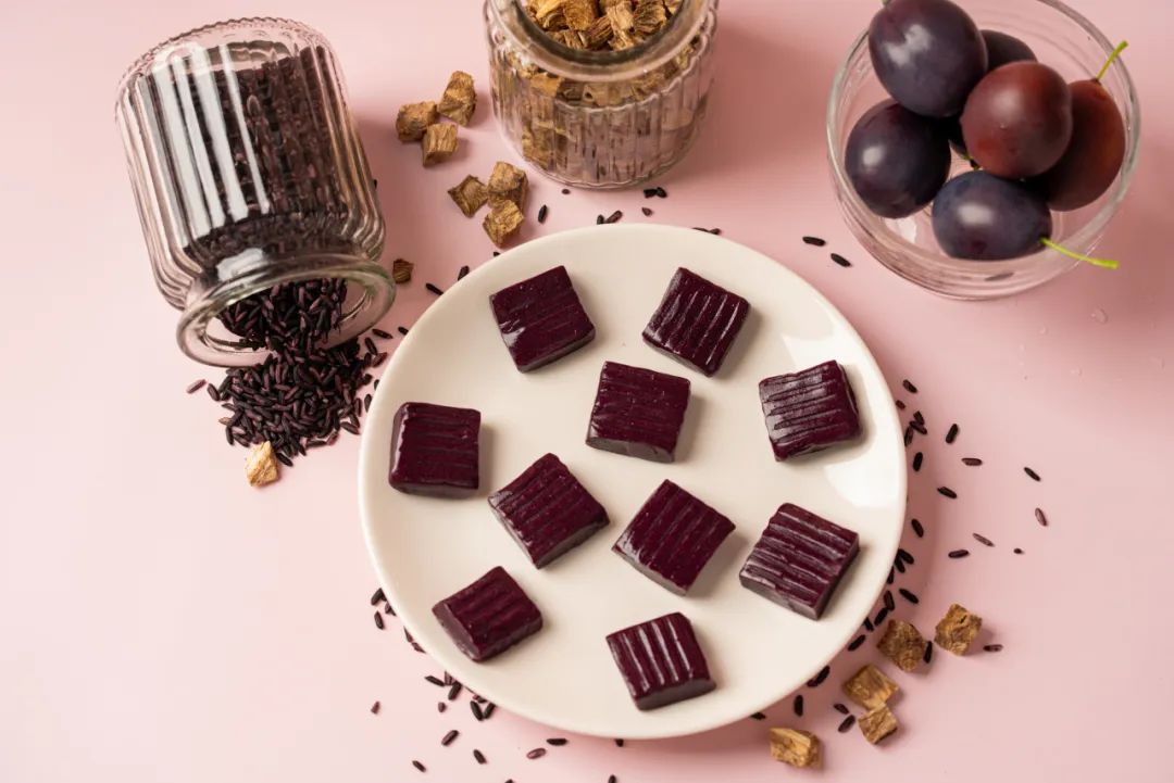 所以,这款糕点,除了西梅,还添加了葛根、紫米、无花果、白芸豆等多种可以让肠道菌群更健康的成分。