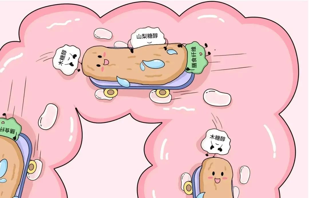 而山梨糖醇进入大肠后,能提高肠道渗透压,让便便更加水润,易于排出体外,还能让肠道菌群更加健康,不容易便秘。