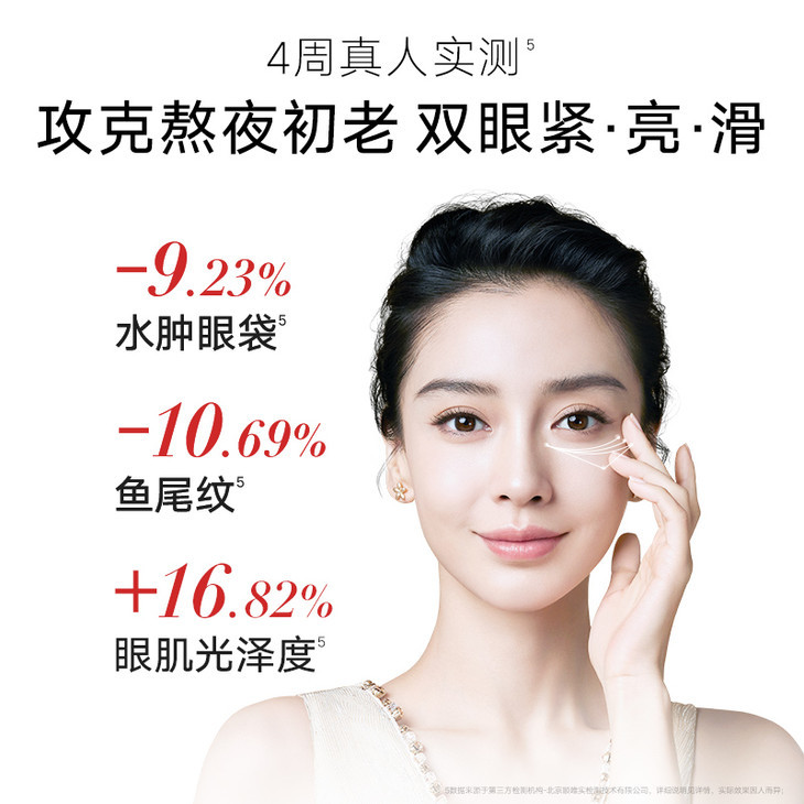 总体配方非常温和,没有刺激成分,配合鎏晶微震按摩头,能更好地渗透到肌肤内,助力你“眼角10度,1笔上扬” 。