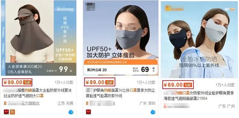 一款真正有防晒效果、UPF50+的防晒口罩,某宝已经卖到了¥7、80+: