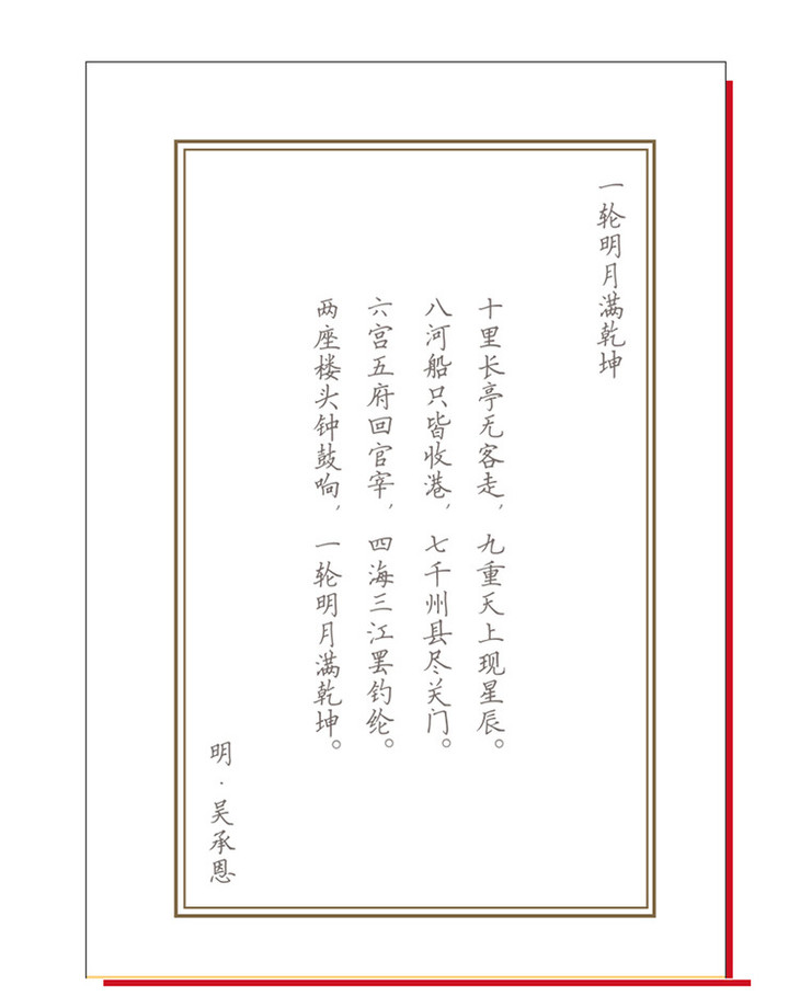 楷书字帖,字迹清晰、端正,颇有仪式感。 选取描写相应事物的优秀诗词作品,怀古望今。