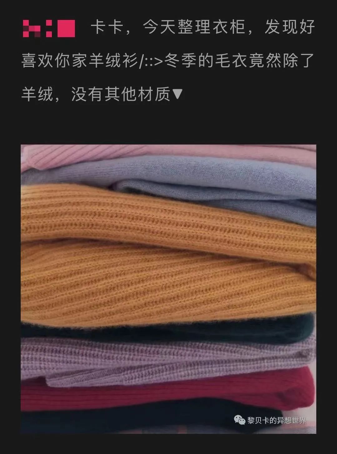 之前听到朋友说,入羊绒坑后,再看到其他材质的毛衣,如果不是款式很吸引人,都不会想穿。哈哈,我同意!这位读者也有同感▼
