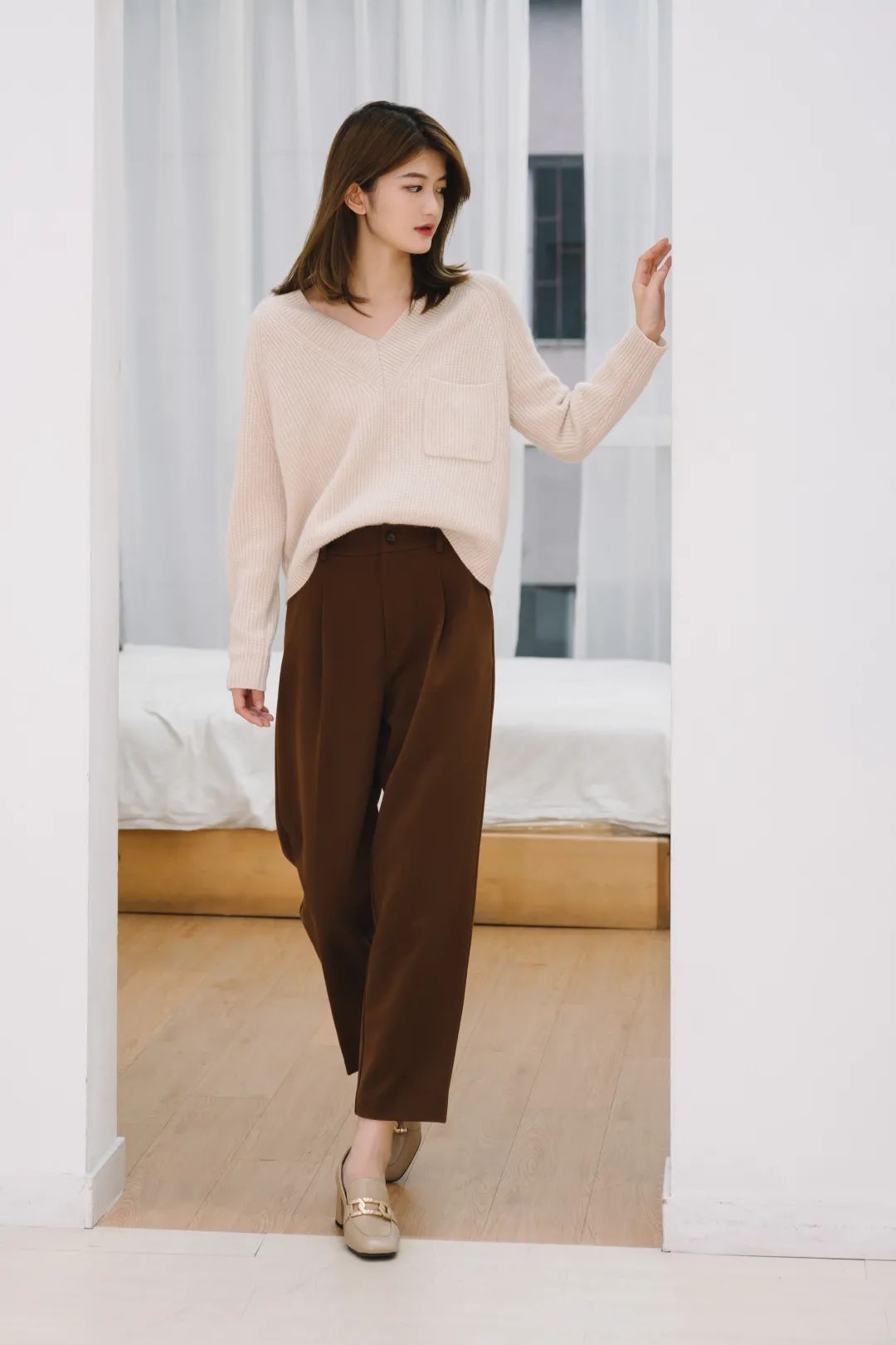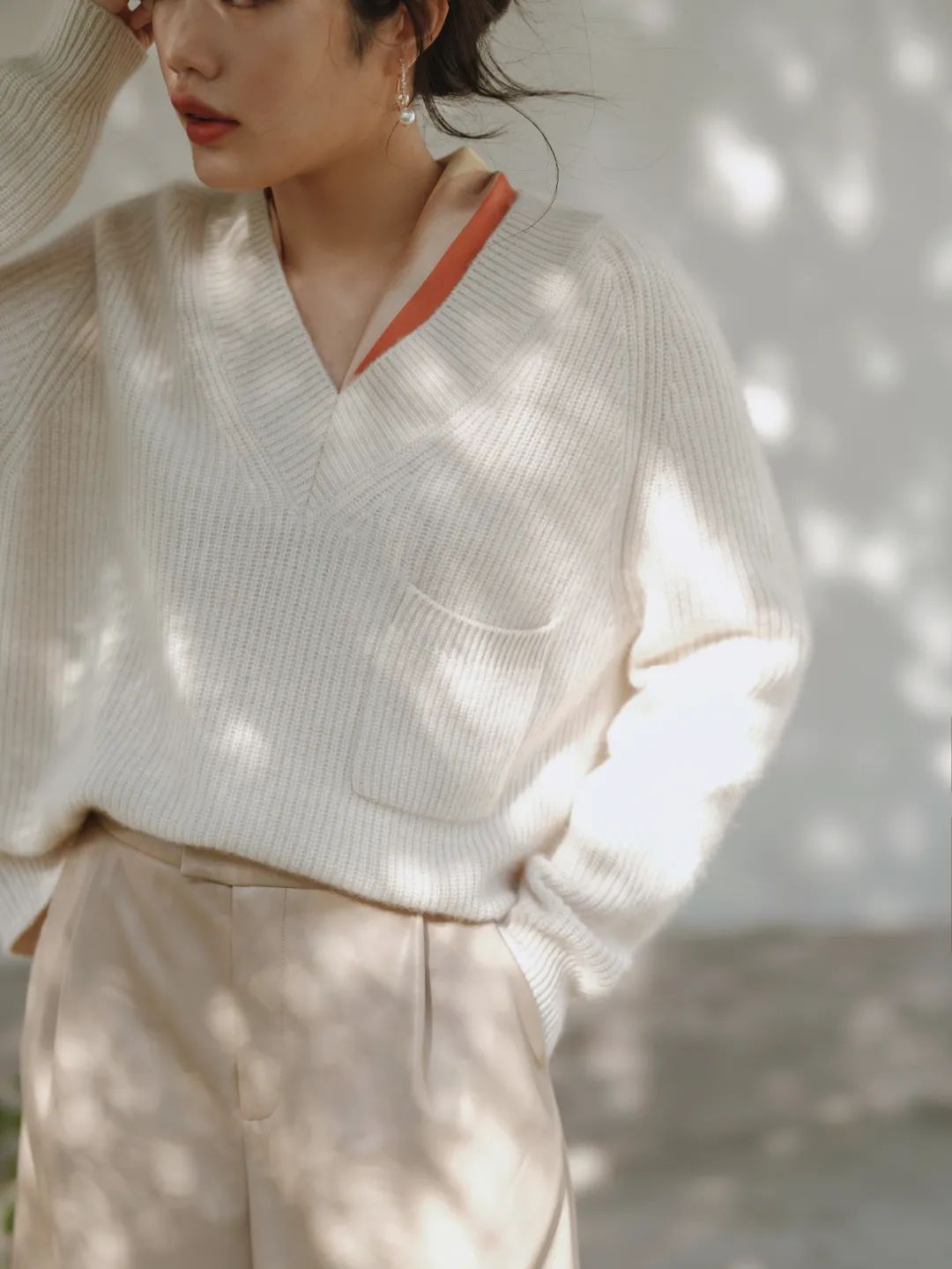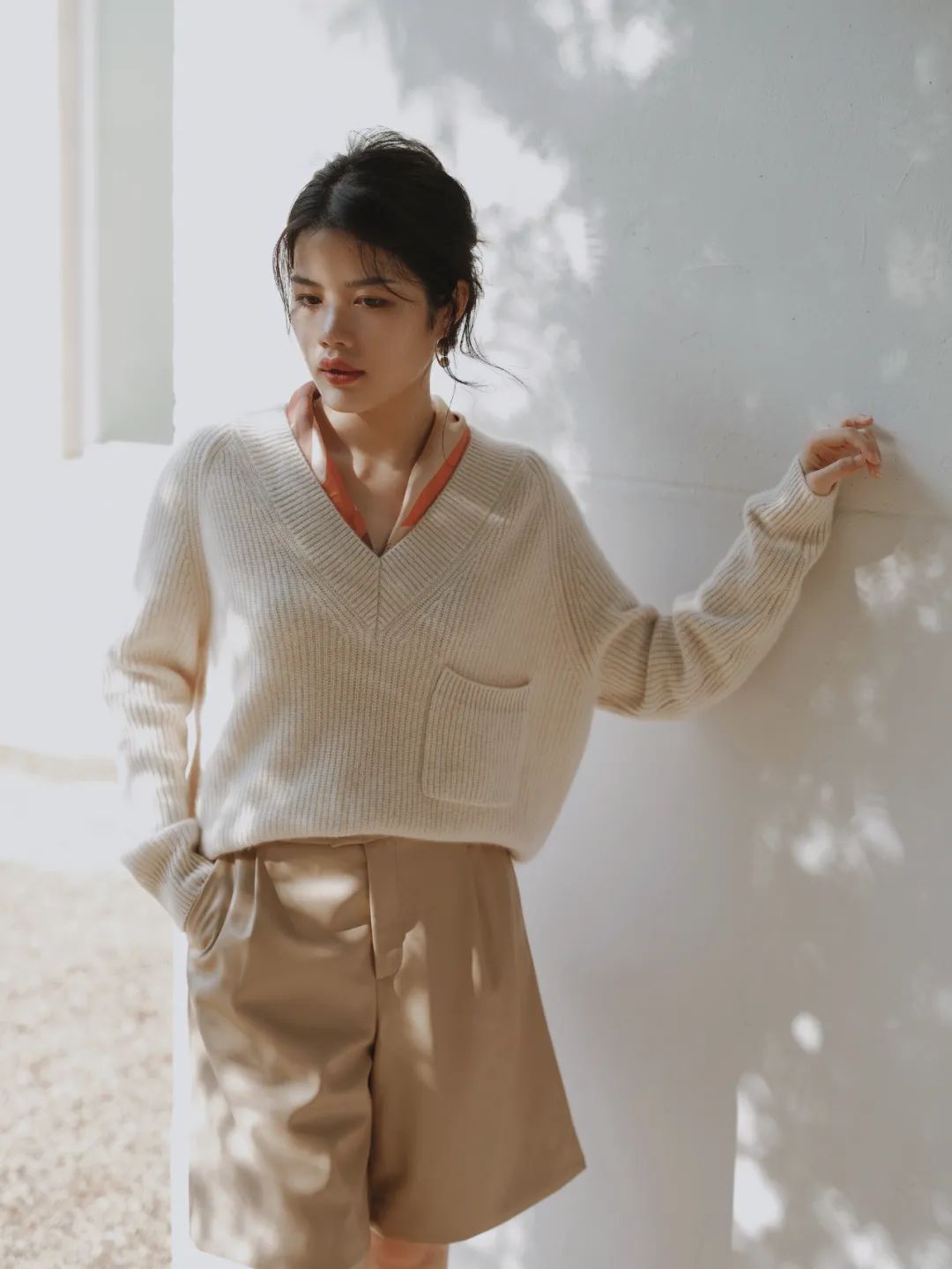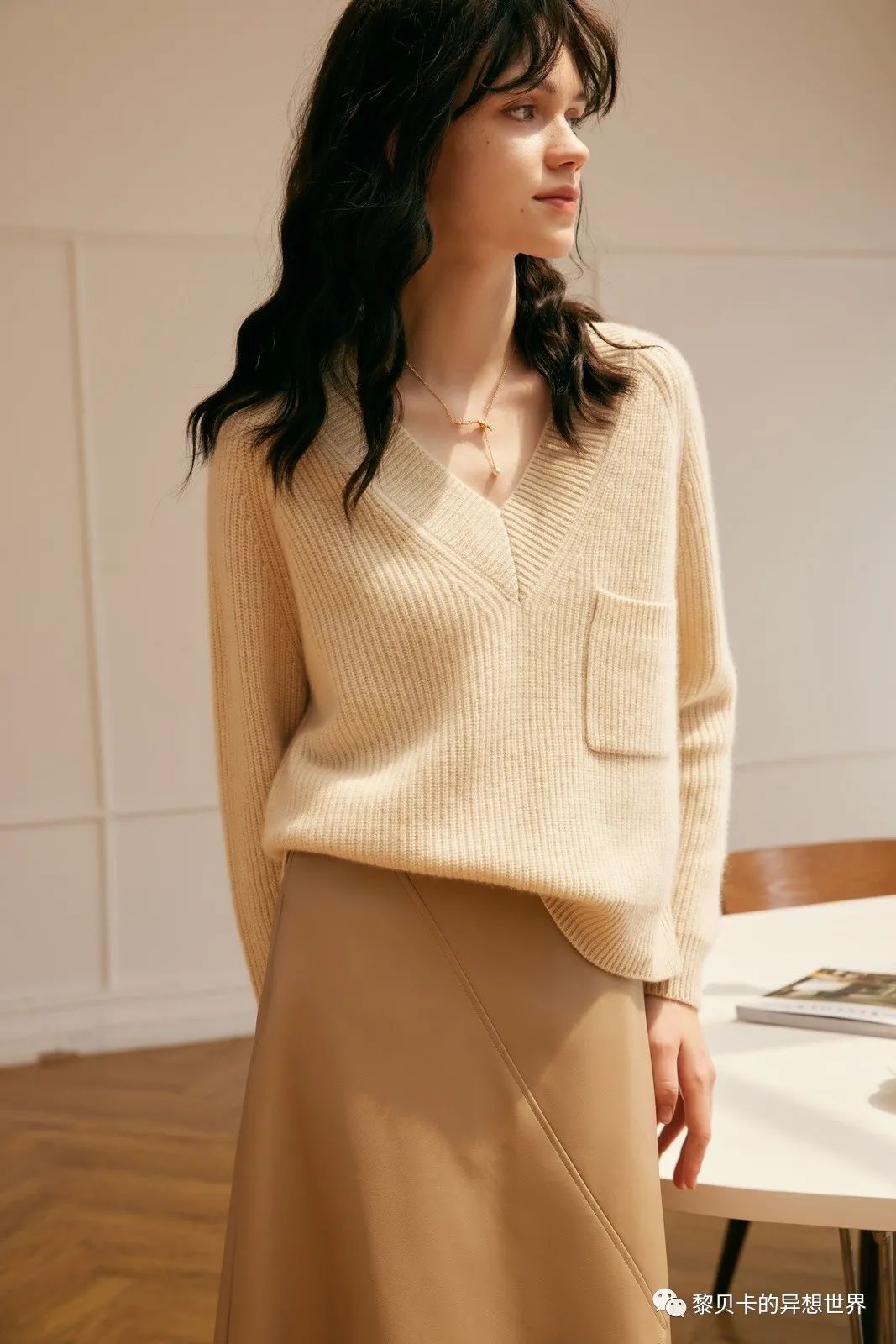 衣柜里的第一件羊绒衫,可以选择V领宽松款的,胖瘦皆宜,能包容各种身材,利用率也高。▼