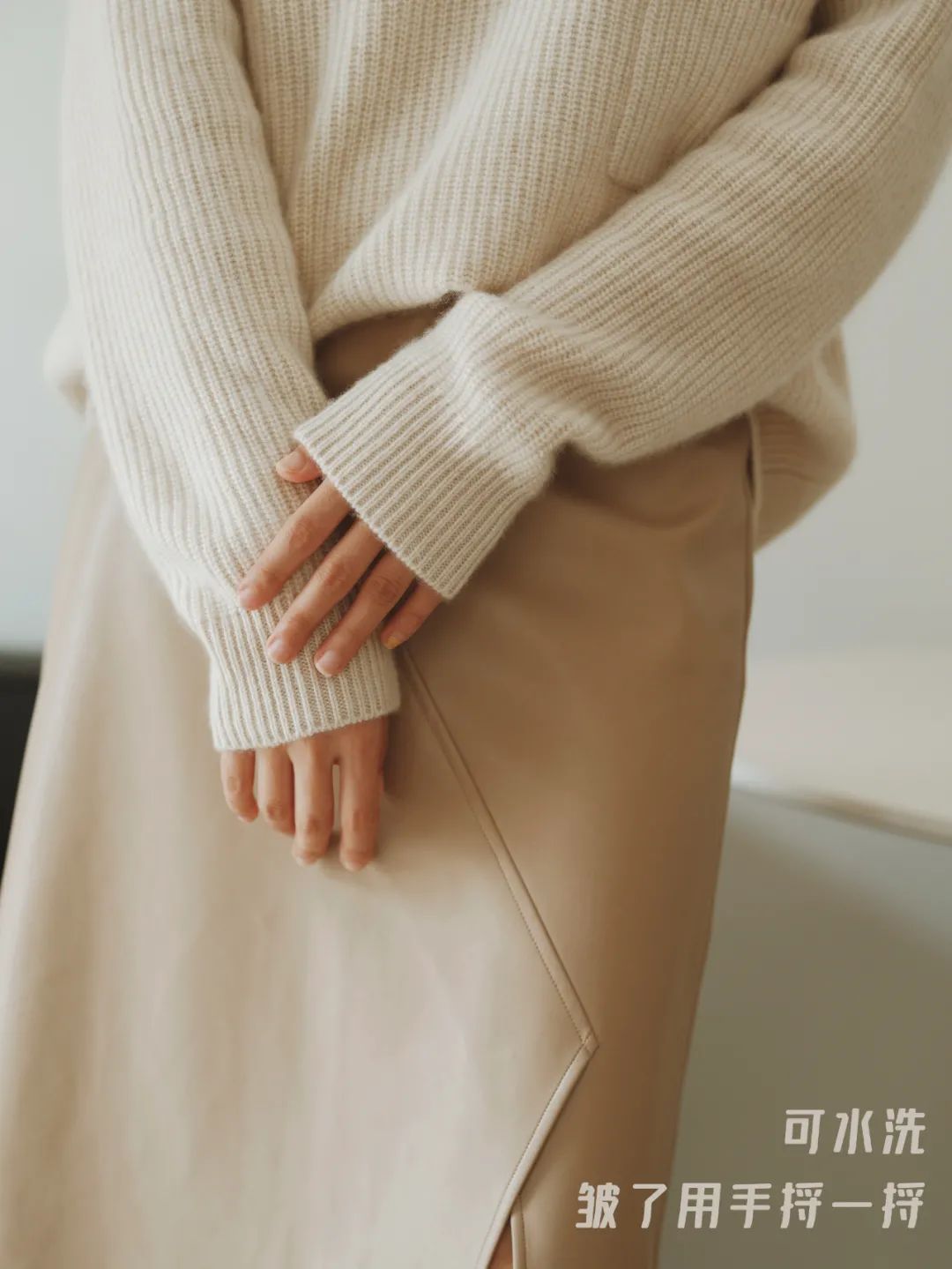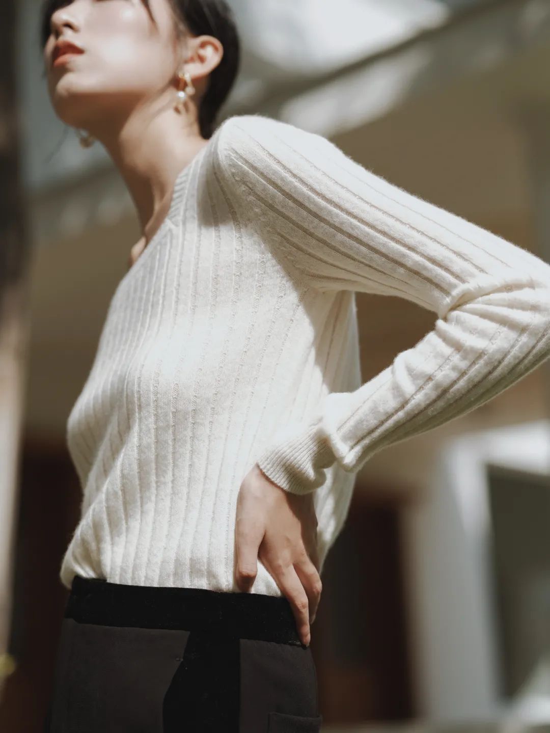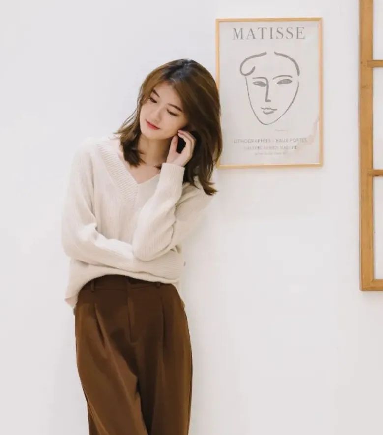 衣柜里的第一件羊绒衫,可以选择V领宽松款的,胖瘦皆宜,能包容各种身材,利用率也高。▼