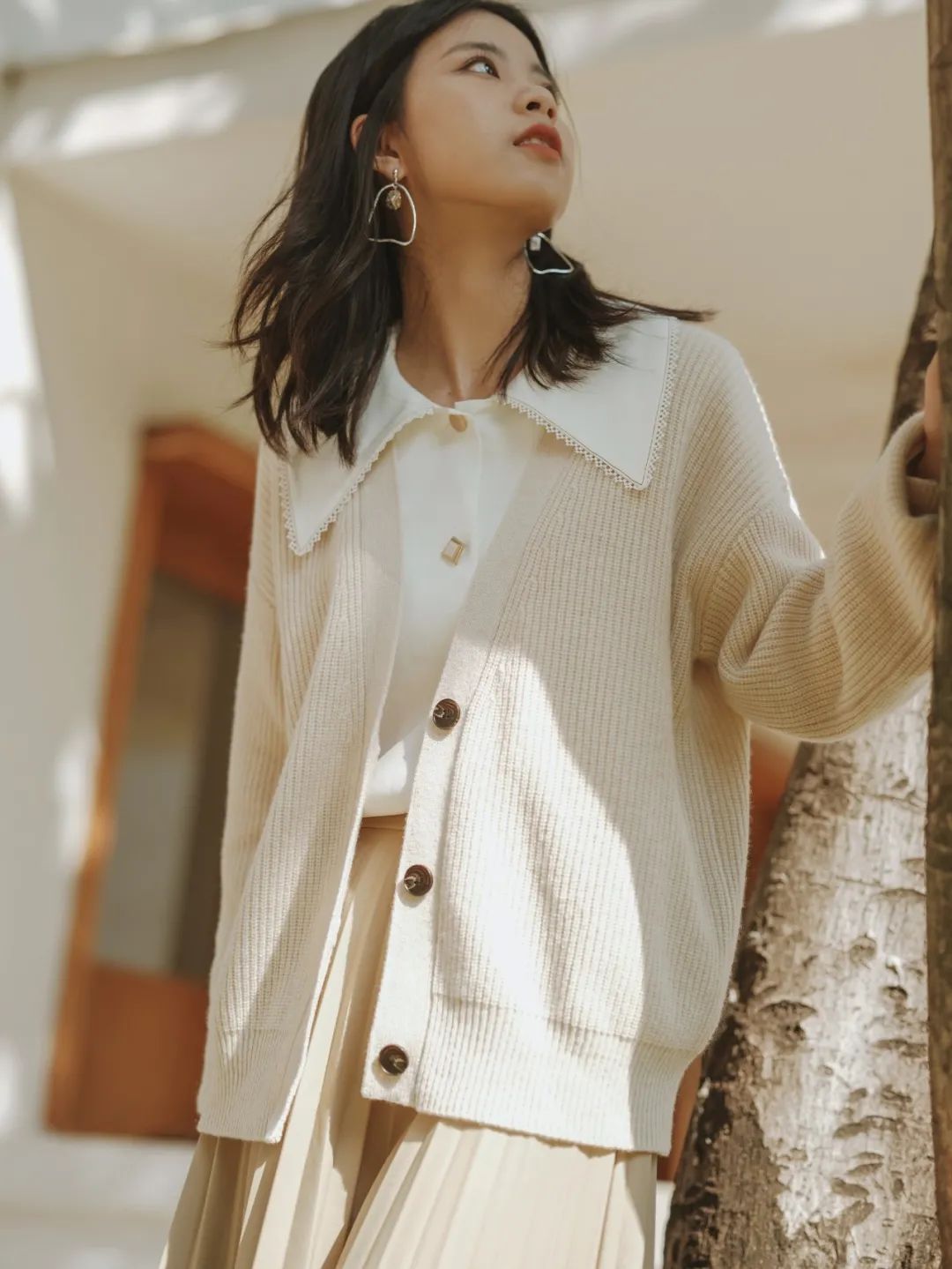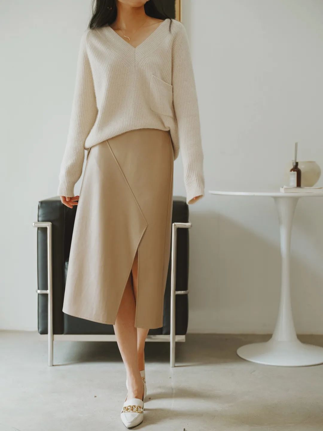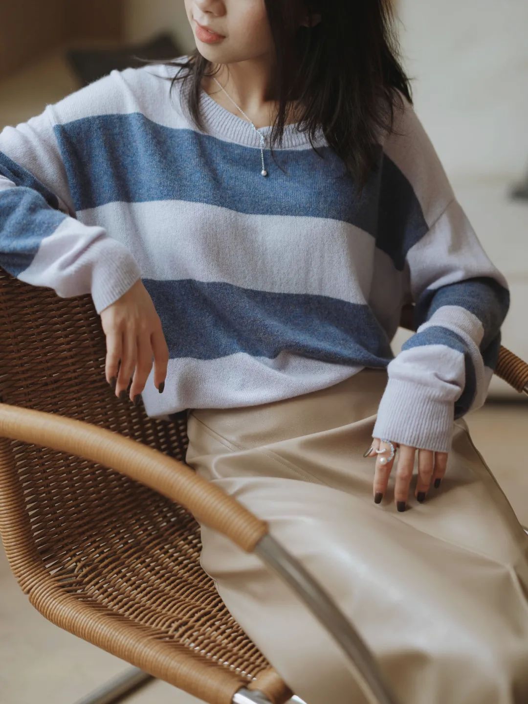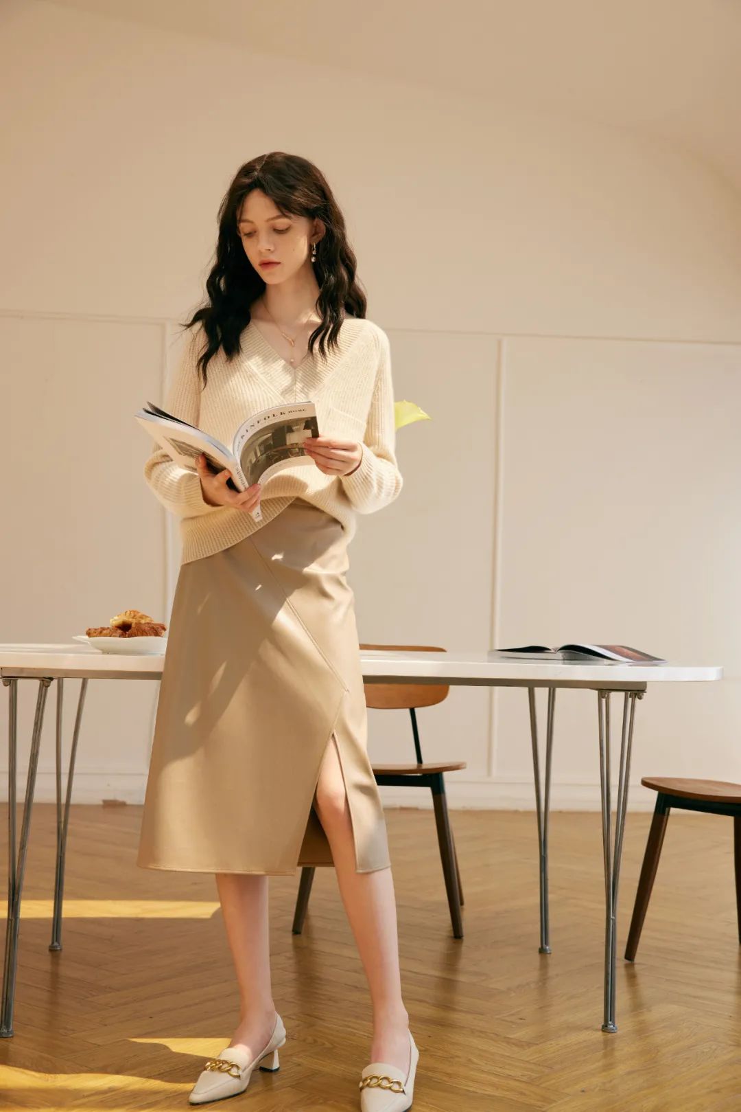 衣柜里的第一件羊绒衫,可以选择V领宽松款的,胖瘦皆宜,能包容各种身材,利用率也高。▼