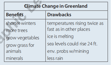 3. Greenland will have more land for growing food, but in other parts of the world this might increase temperatures, raise sea levels, and/or cause droughts.