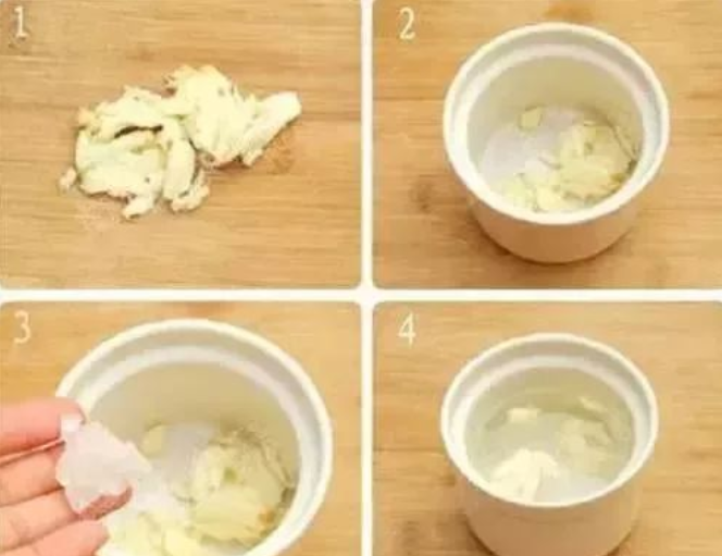 取三四头大蒜,去皮后,把蒜瓣切成薄片。晚上睡前将切片的蒜瓣排着放在火炉的边沿上烤干,磨成末,加点红糖,倒入开水搅拌均匀,每天喝两杯。