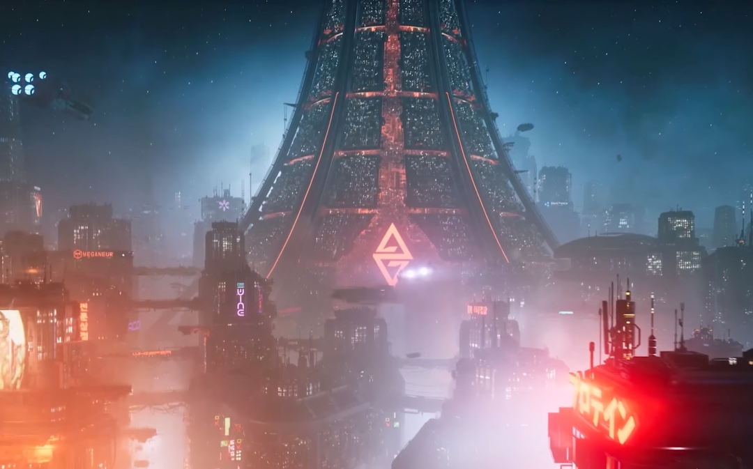 《上行战场》的美术可以说已经摸到了如今赛博朋克游戏场景设计的天花板,得益于优秀的奇观级建筑“巢都”上下层级的设计理念,制作组大胆地以垂直空间作为游戏核心场景设计风格。玩家不仅在战斗关卡中体验大量的高低差战斗,在游戏流程上遵循着以垂直方向为主的剧情路线。