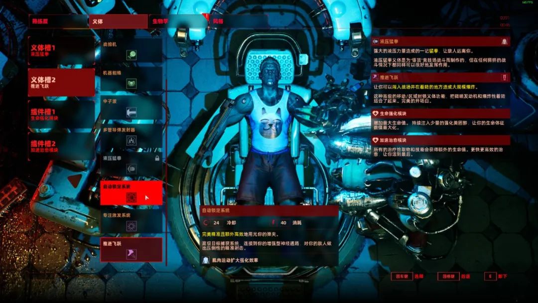但是在如此华丽的美术之下,战斗系统就显得有点跟不上了。作为角色养成核心系统之一、同时也是赛博朋克世界核心元素,义体搜集和技能形态改变在游戏初期会给玩家带来强烈的新奇感和成就感。