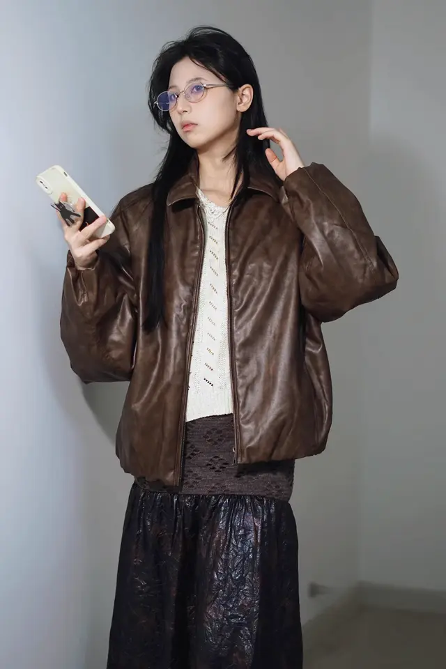 你可以永远相信棕色外套的酷感|夹棉皮衣