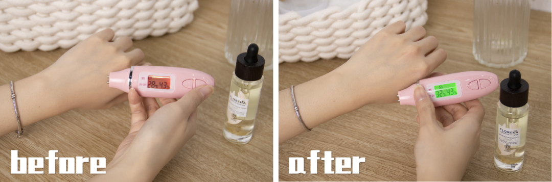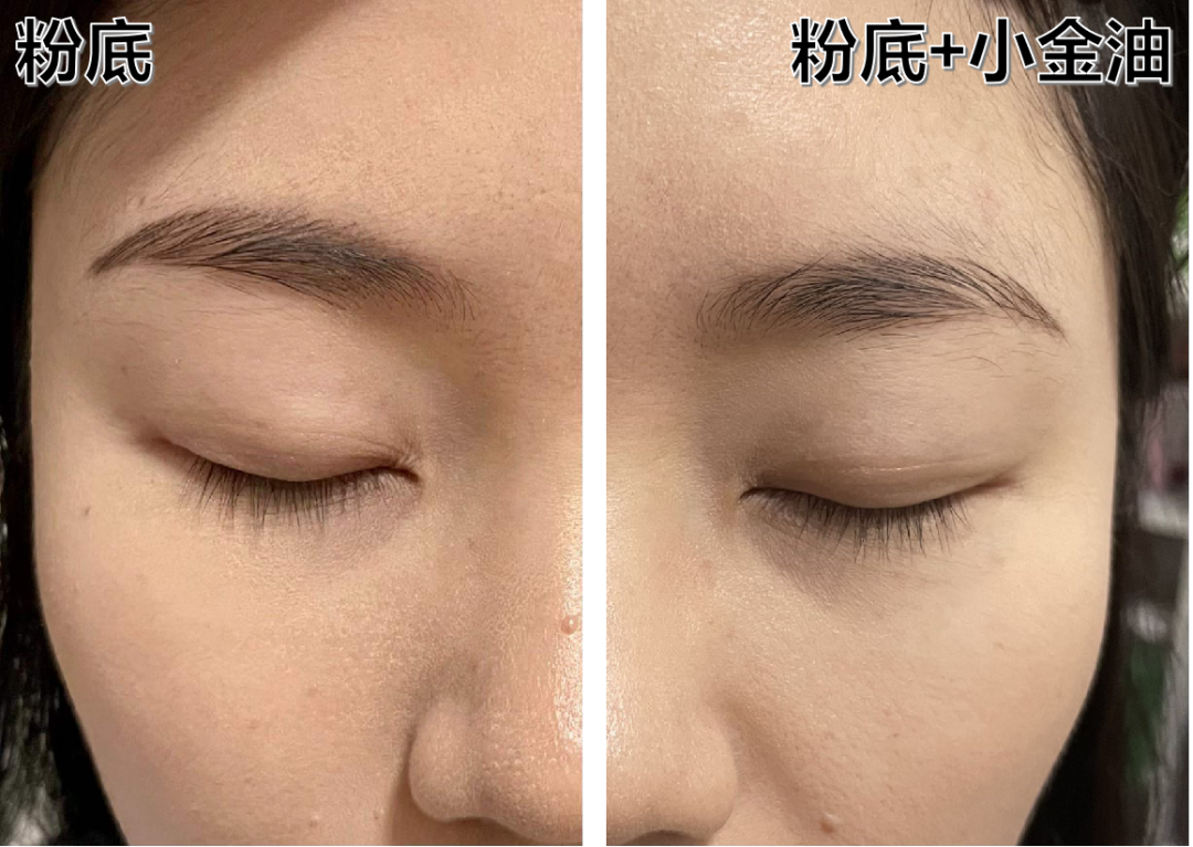 2、5分钟后,取半滴管小金油在掌心搓热,轻轻按摩脸部加强吸收