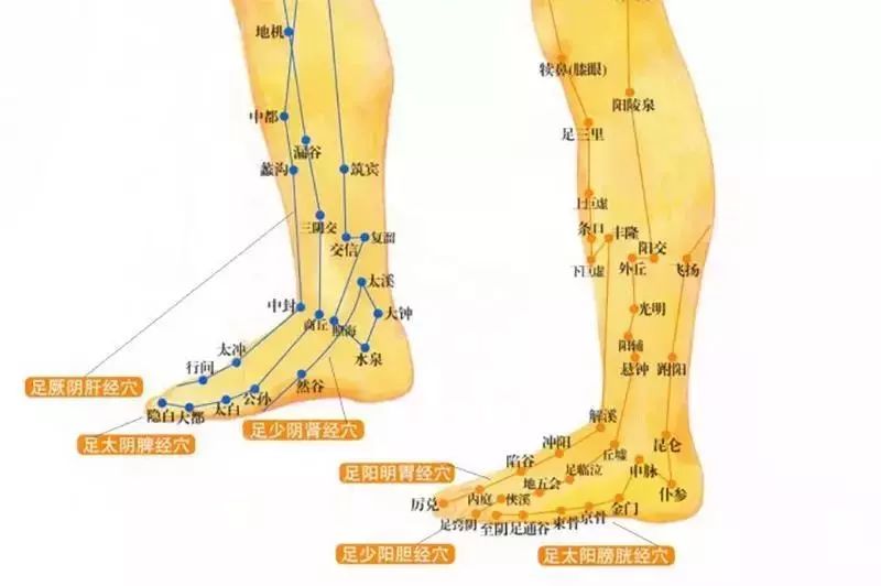 足部是三条阴经的起点,三条阳经的终点,足部六条经脉的井、荥、俞、原等穴位均位于足部。