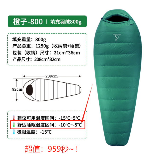 【安地斯 橙子系列 木乃伊鸭绒睡袋】