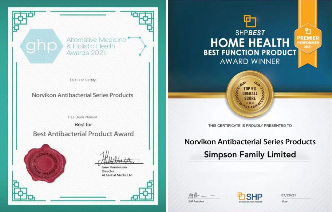 ▲新西兰“最佳抗菌产品奖”和“最佳护理功效奖”
