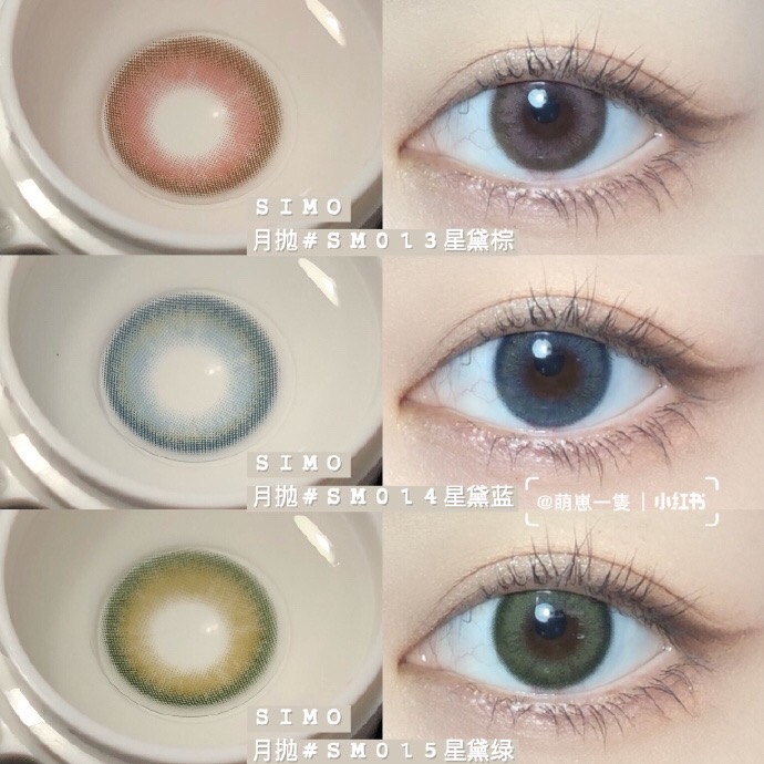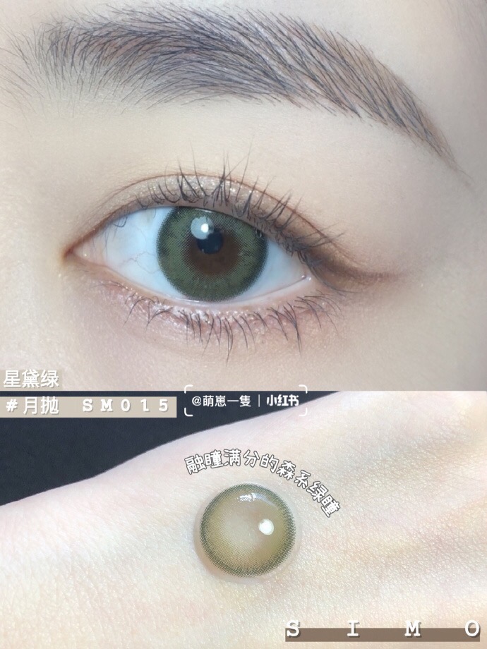 清新深邃的墨绿色外圈,里面用亚麻棕过渡,融瞳效果不错,很显白的一款~