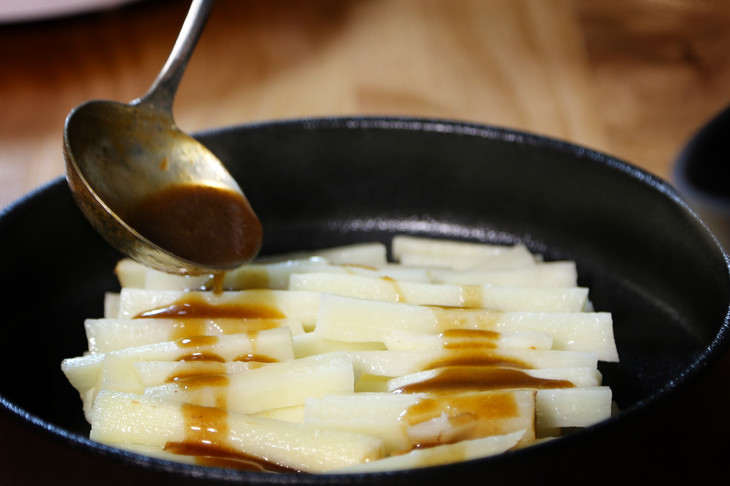 4、将汤汁均匀淋在山药上即可食用