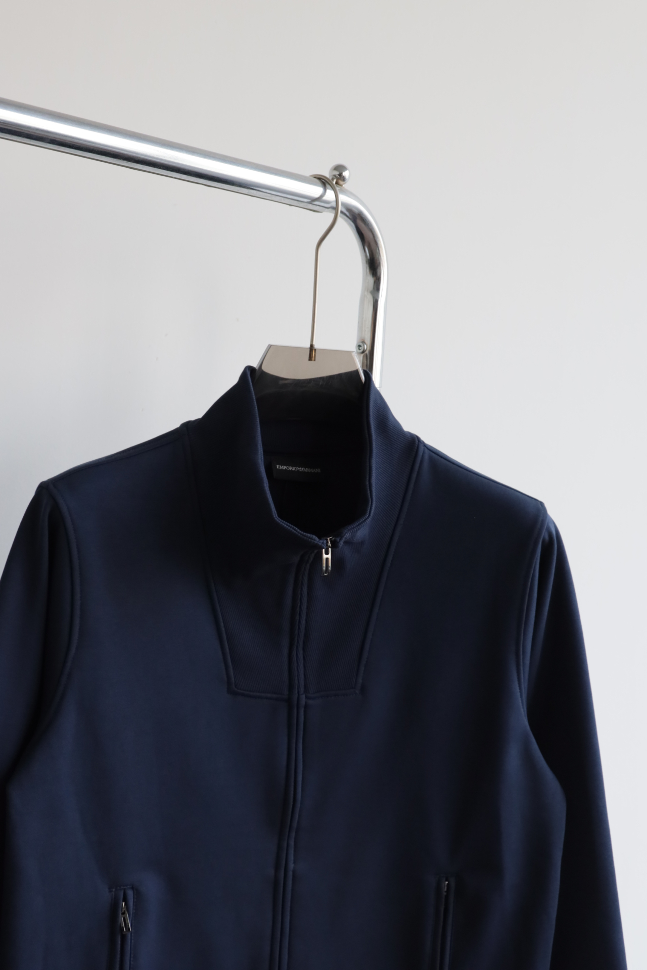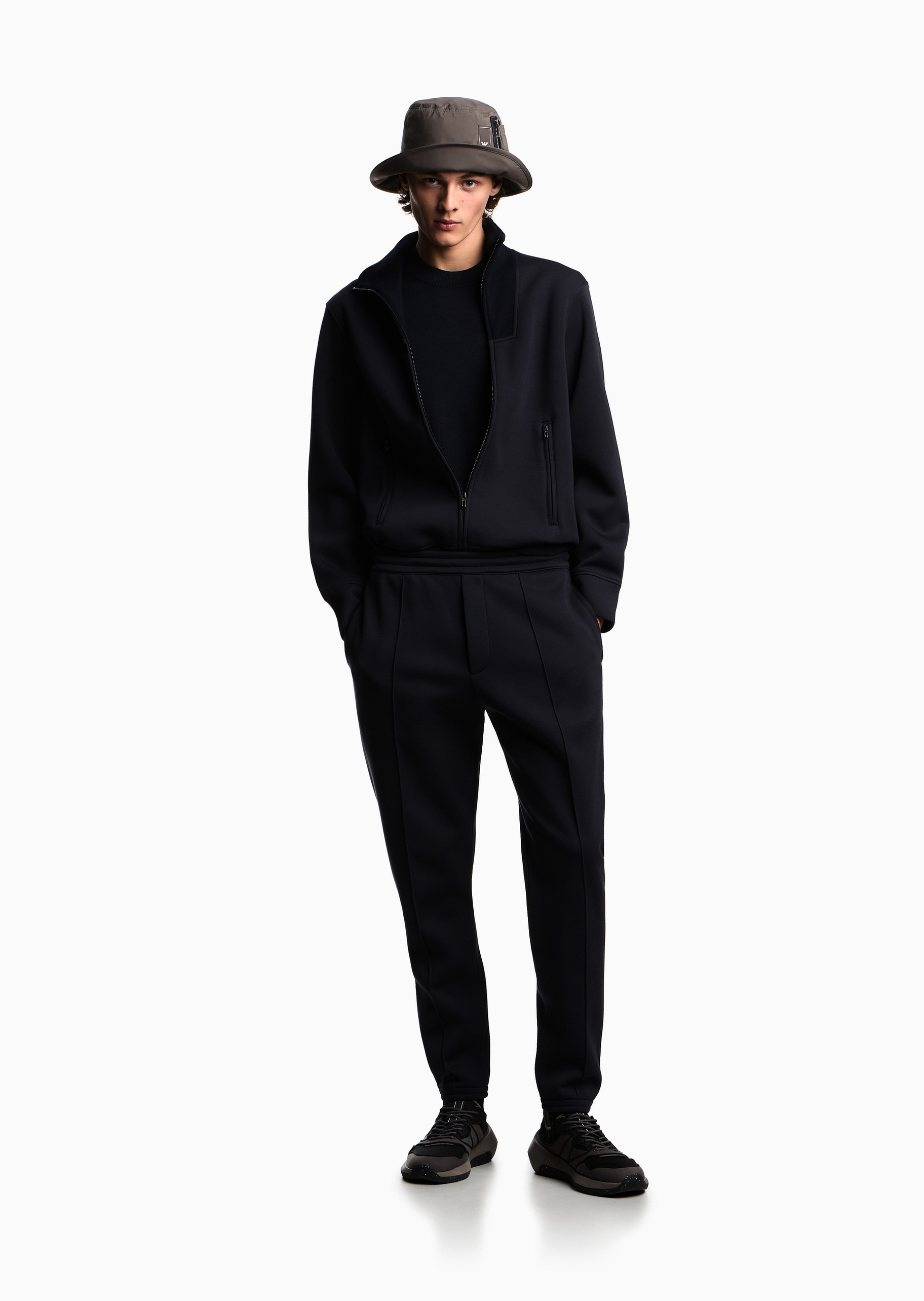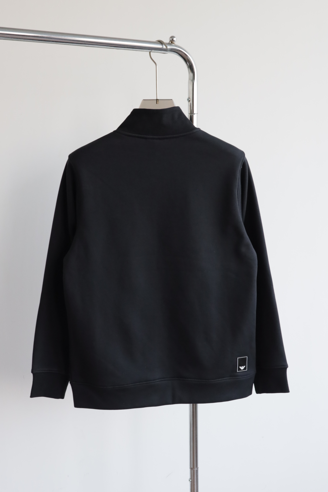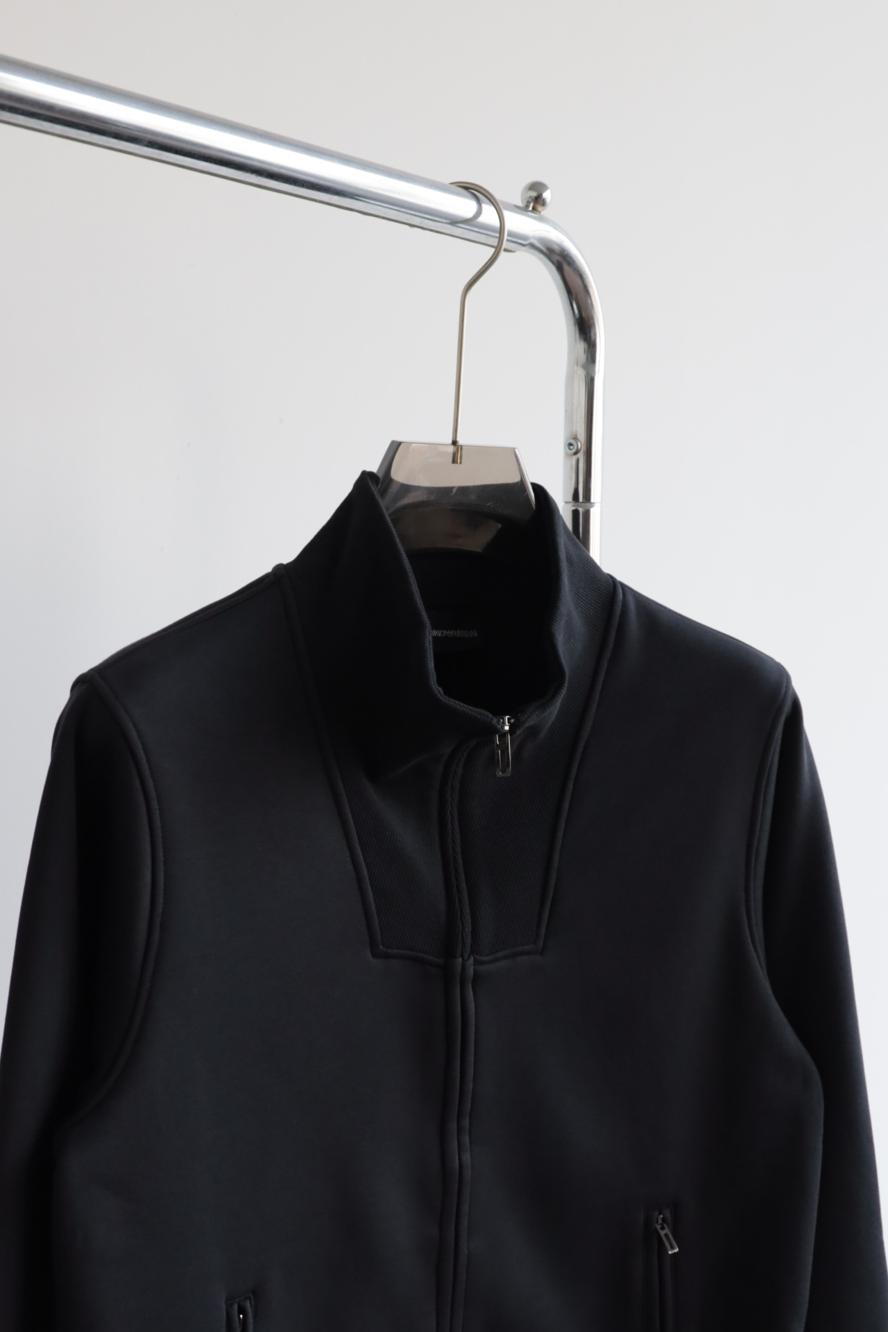 立领设计锁住颈部温度。领口拼接横纹编织螺纹