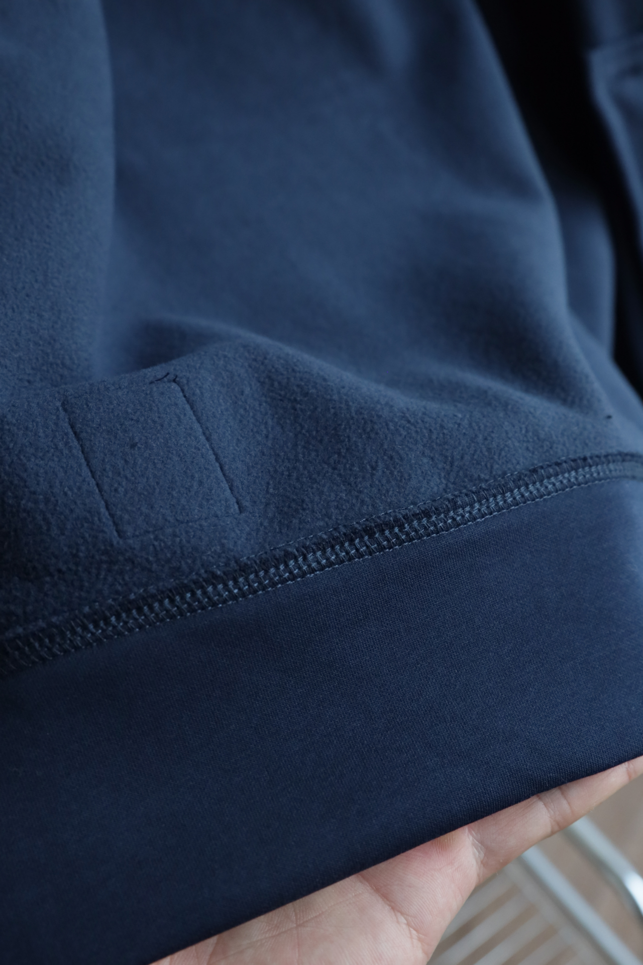面料克重460g,厚实挺括,棉涤混纺,丝光水洗肌理质感