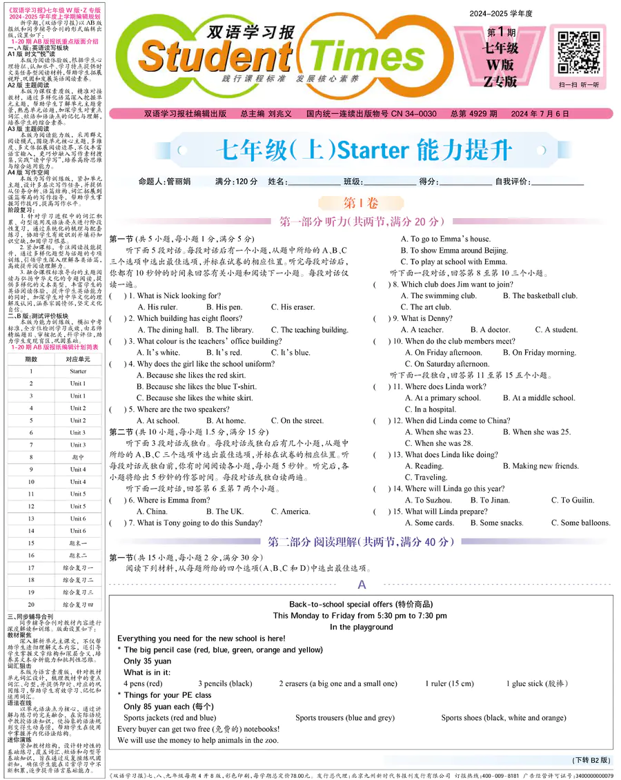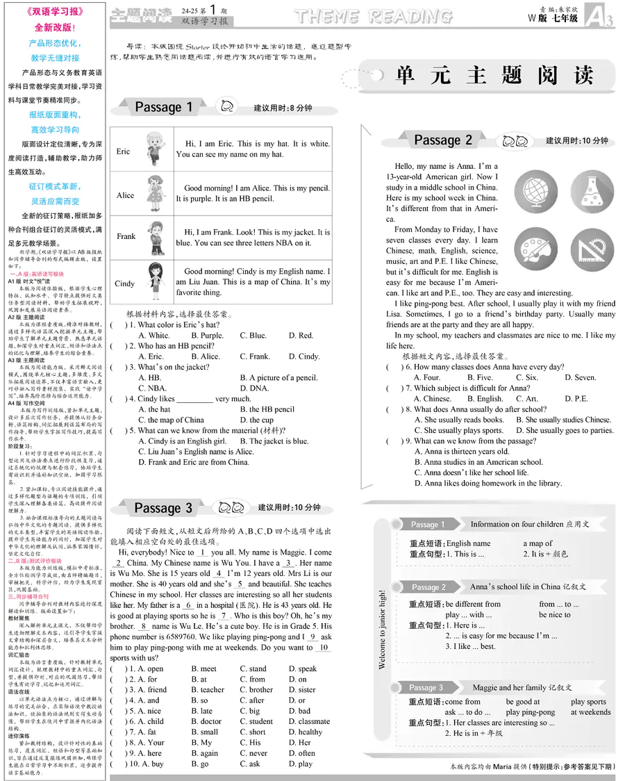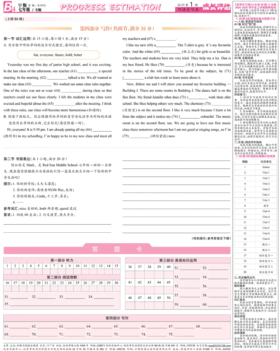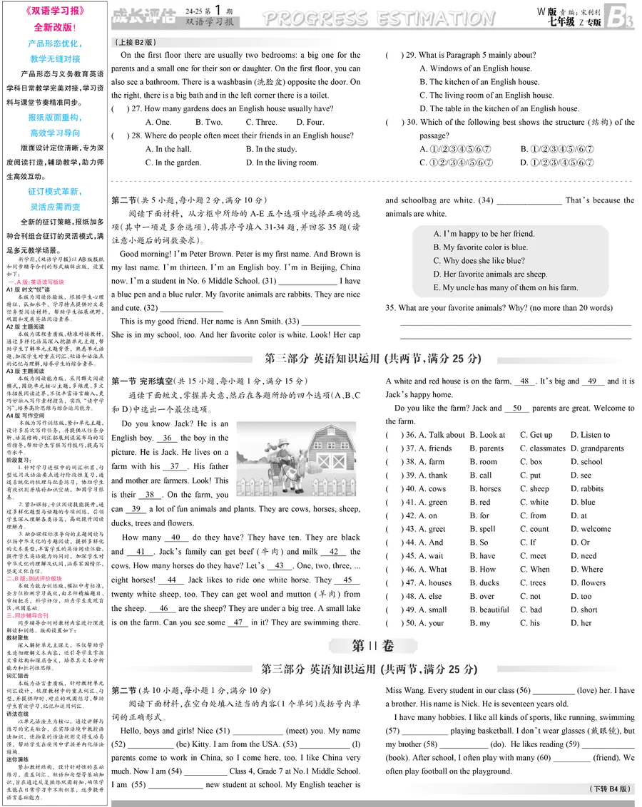初中英语样报 七年级 W版Z专版 第1期