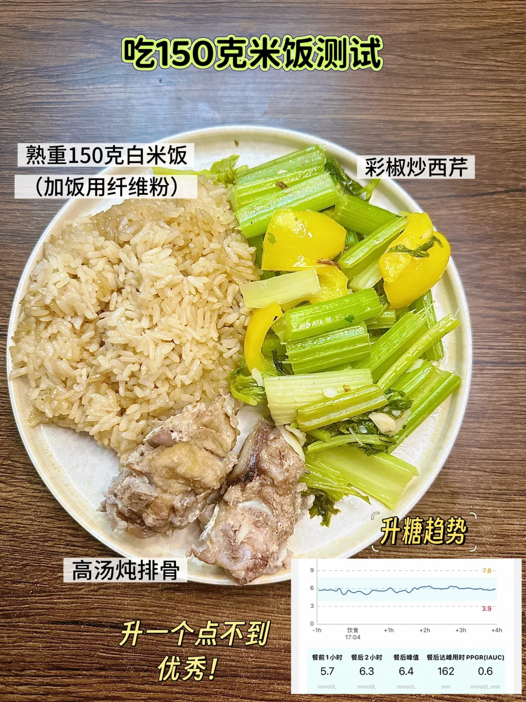 ✅减脂糖友亲测:熟重200g的纤维粉大米饭+娃娃菜+鸡腿,餐前5.3,餐二6.6,波动真的太稳了👍