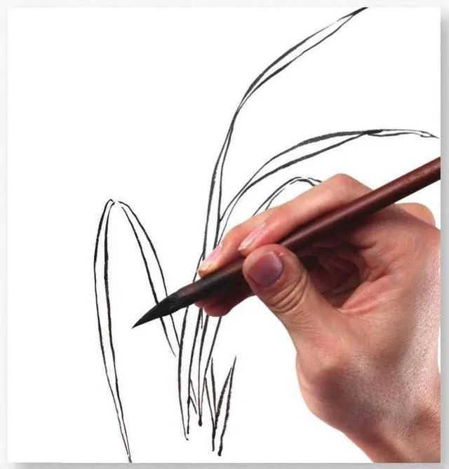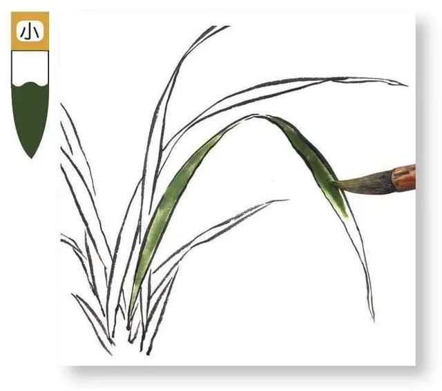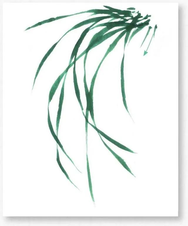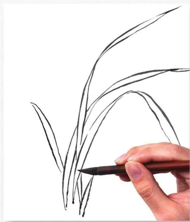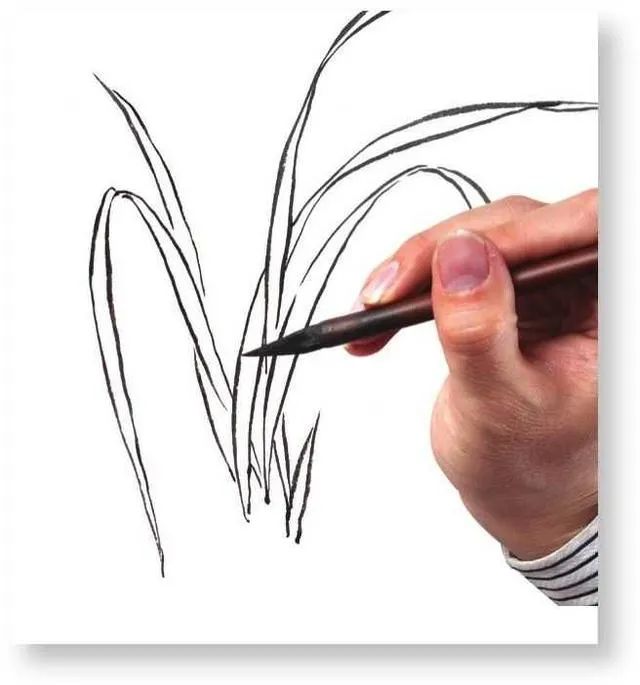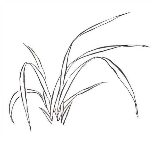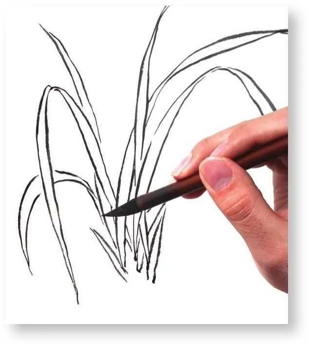 画者勾画叶丛时首先要想好叶丛的布局穿插,做到心中有数,再一片片勾画兰叶,力图使兰叶看起来多而不乱。5 勾画叶片时,叶片要有长短大小的变化,叶片长度不宜过于均匀,应长短错落分布。