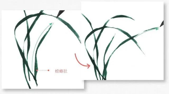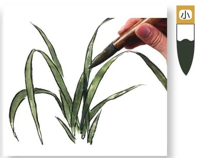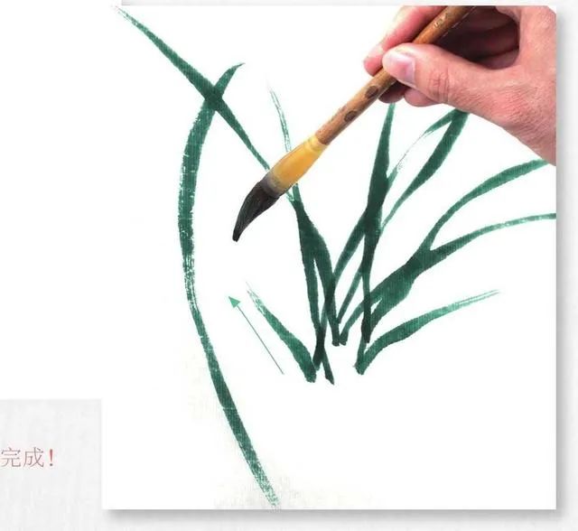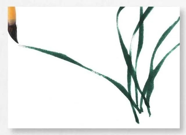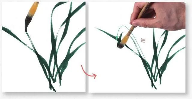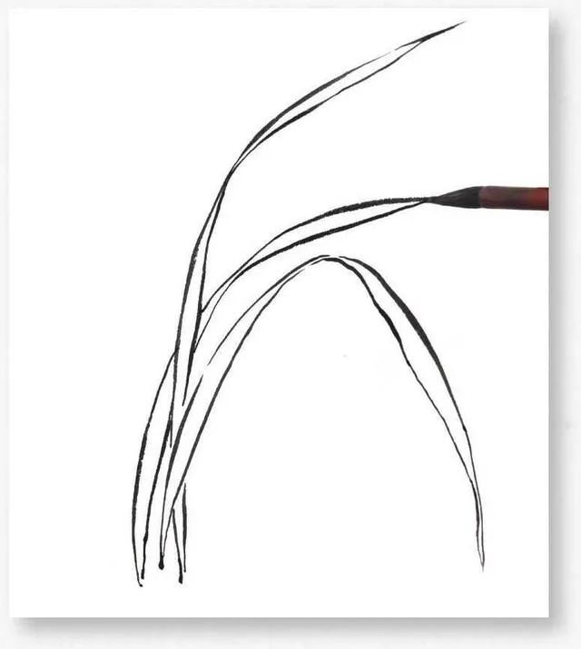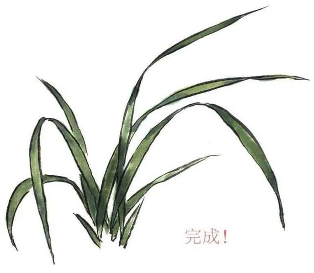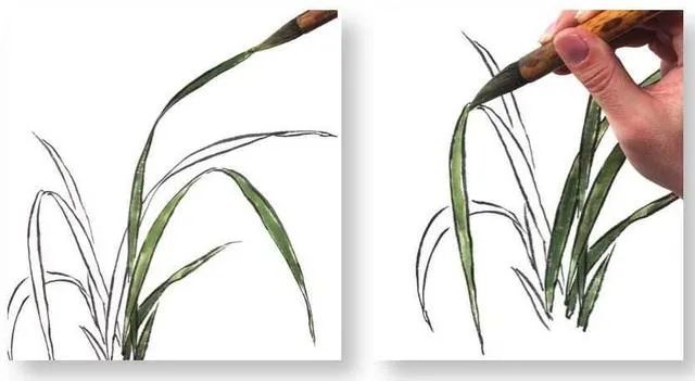 3 自下向上生兰叶,全叶有粗有细,行笔要苍劲有力。