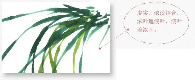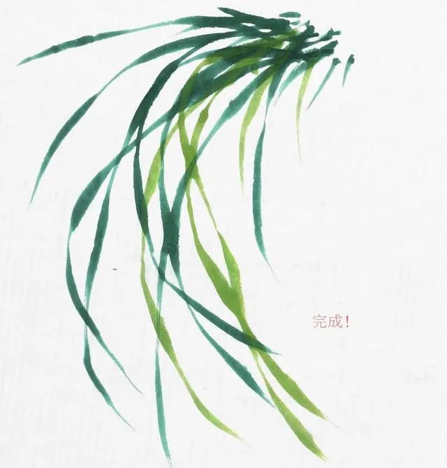 初学者要注意构图和颜色的变化,画兰叶要根据不同的长势形态而有不同的深浅明暗。