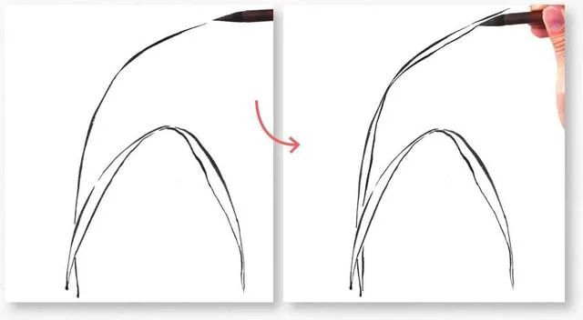 2 参照上面的方法勾画叶片,两片叶片交叉呈“凤眼”。