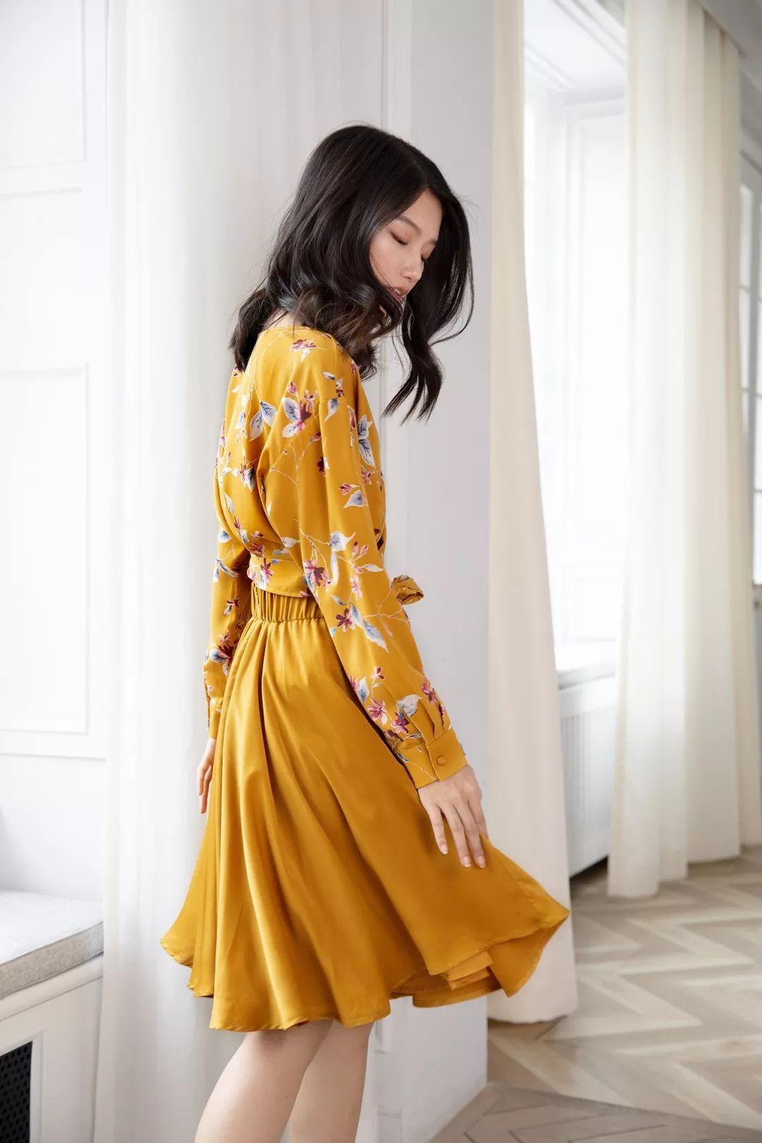 这条姜黄色高腰伞裙,就是这样一件利器。它很轻薄,即使上身穿得稍微厚重一些也不会笨拙。▼