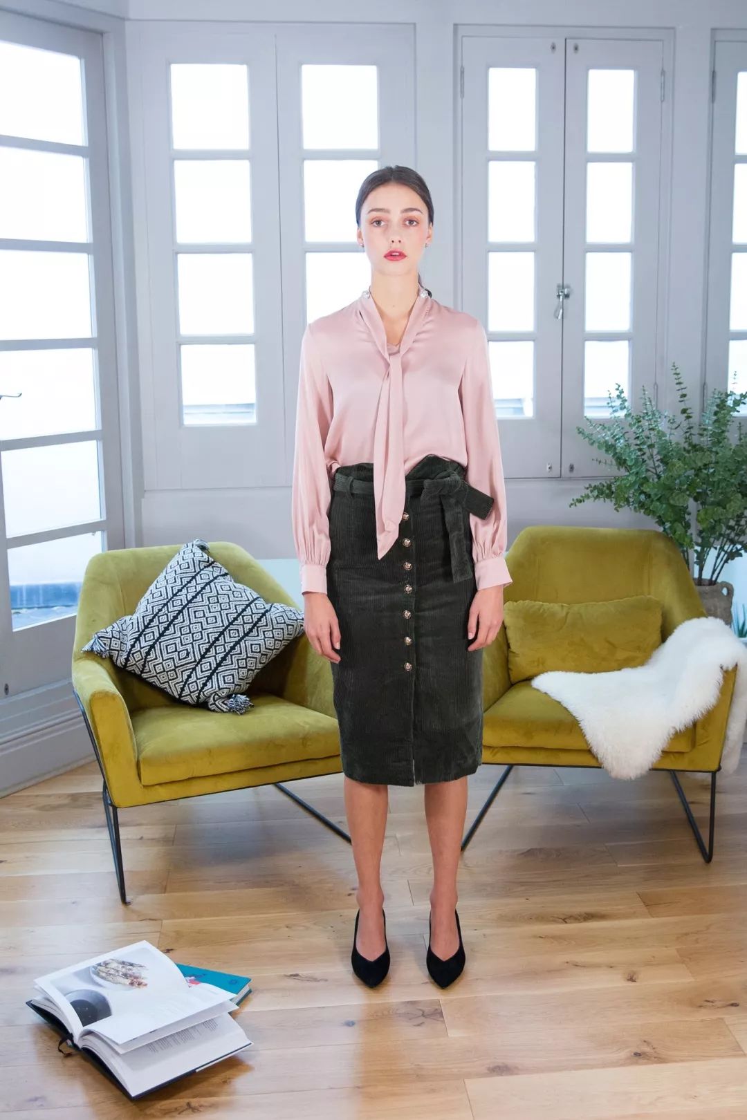 北方的同学总说冬天太冷跟裙子无缘,秋冬想穿裙子,不妨试试面料厚实的灯芯绒半裙。