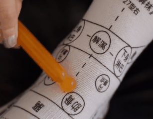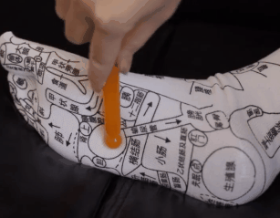 脚底相应穴位刻画出来通过点穴锤的按压刺激促进穴位血气循环