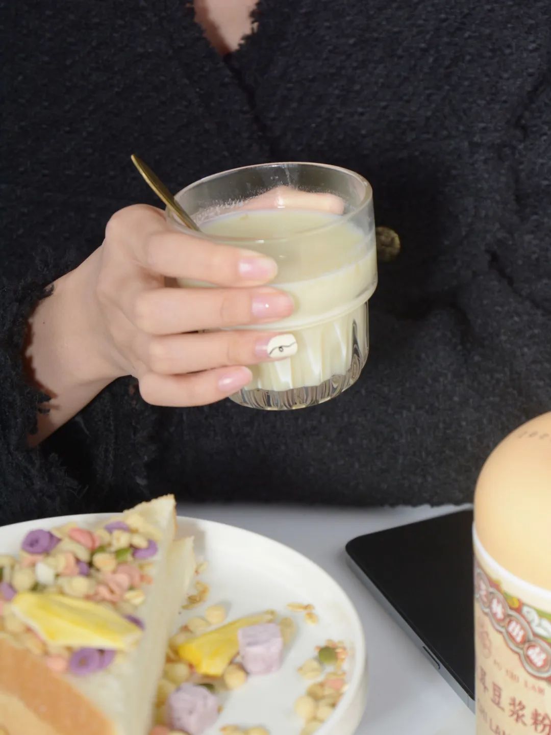 轻轻抿一口,微甜浓香,不输手工现磨的豆浆。甜味适中,对减脂、控糖的姐妹十分友好。